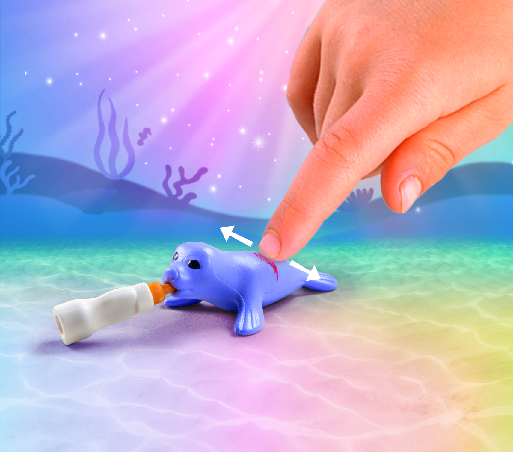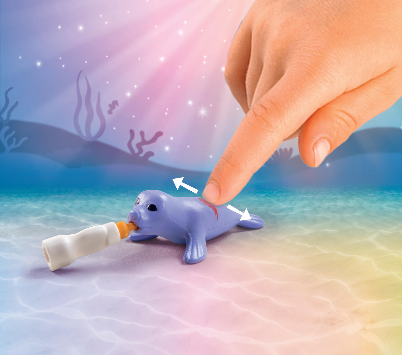 | Plus produit | - La lanterne fleurie est luminescente.\n- La petite blessure sur le dos du bébé phoque disparait lorsqu\'on la frotte plusieurs fois et réapparait après "refroidissement".\n- Les deux coquillages décoratifs peuvent être fixés sur des surfaces lisses telles que le verre, les miroirs ou les carreaux à l\'aide des ventouses. |