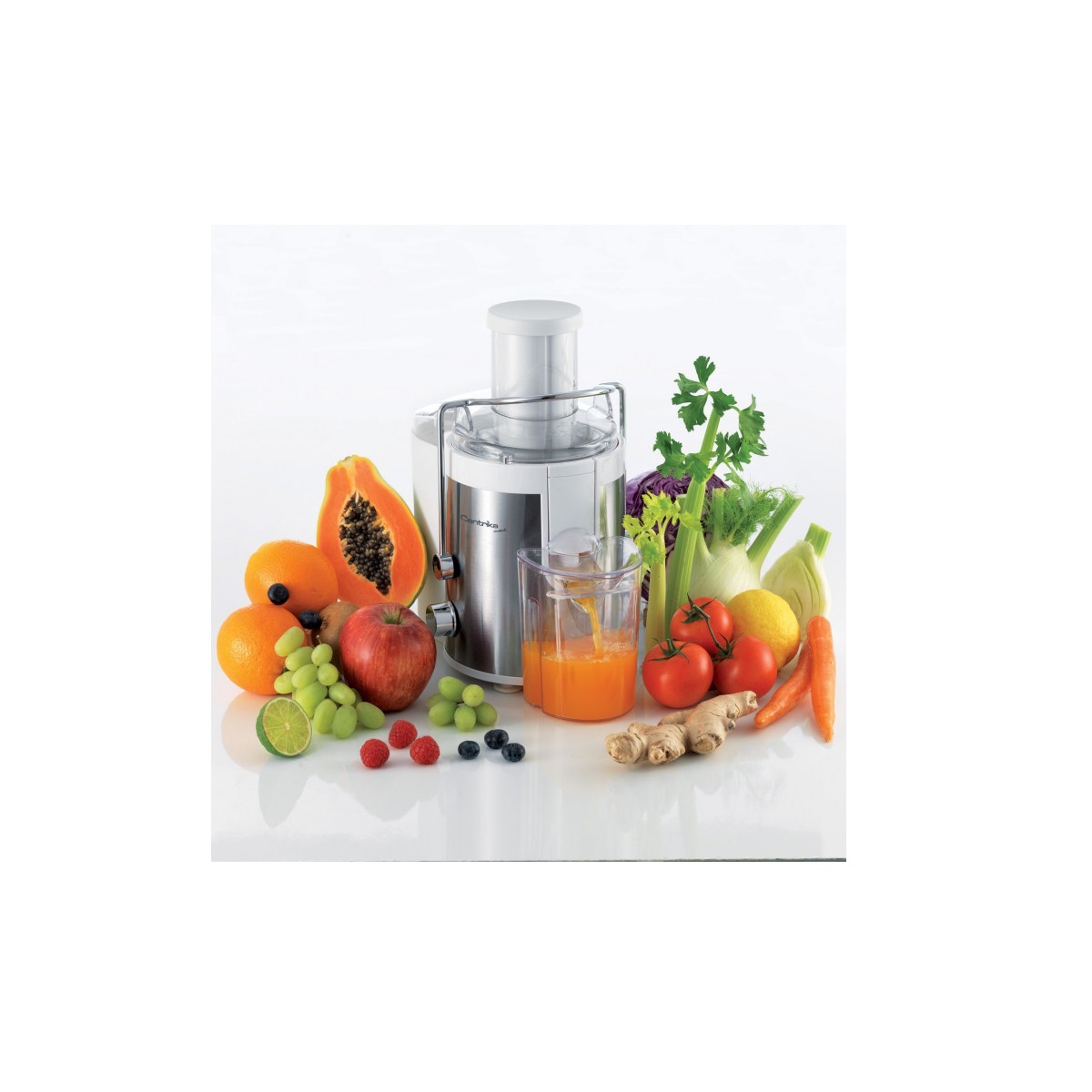 175-1 - centrifugeuse 500w centrika blanc - La nouvelle centrifugeuse Centrika par Ariete est équipée d?un compartiment de collecte de la pulpe et d?un bec verseur. Compacte et originale, elle dispose d?une puissance de 500W qui vous permet de préparer vos mélanges vitaminés en un simple geste. Son réceptacle de 450 ml vous permet de préparer une grande quantité de jus. Le réservoir amovible pratique pour la pulpe vous permet de préparer tout type de jus sans interruption ! Puissance 500 watts avec 2 vitesses.