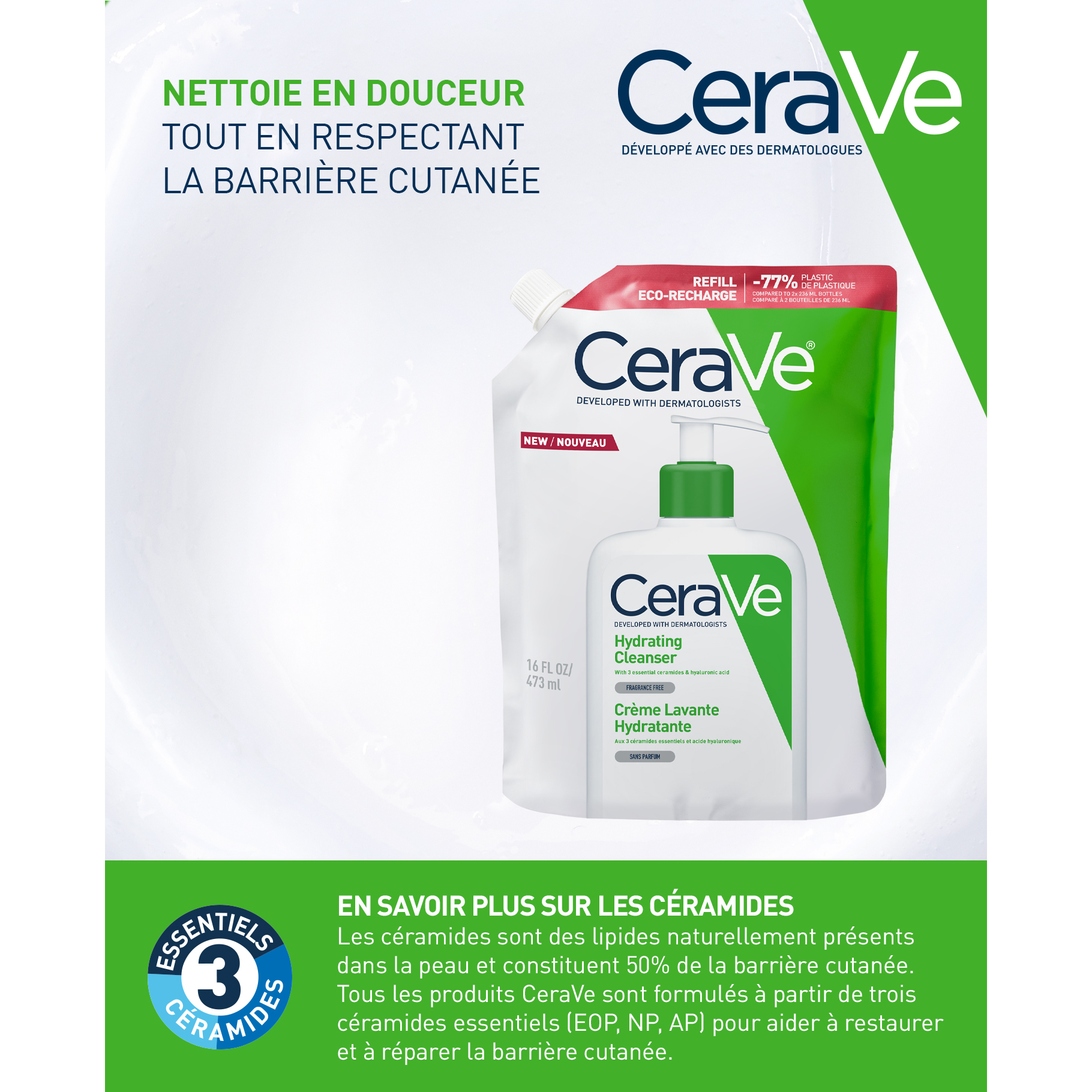| Libellé | Cerave Crème Lavante Hydratante Eco-Recharge 473ml |