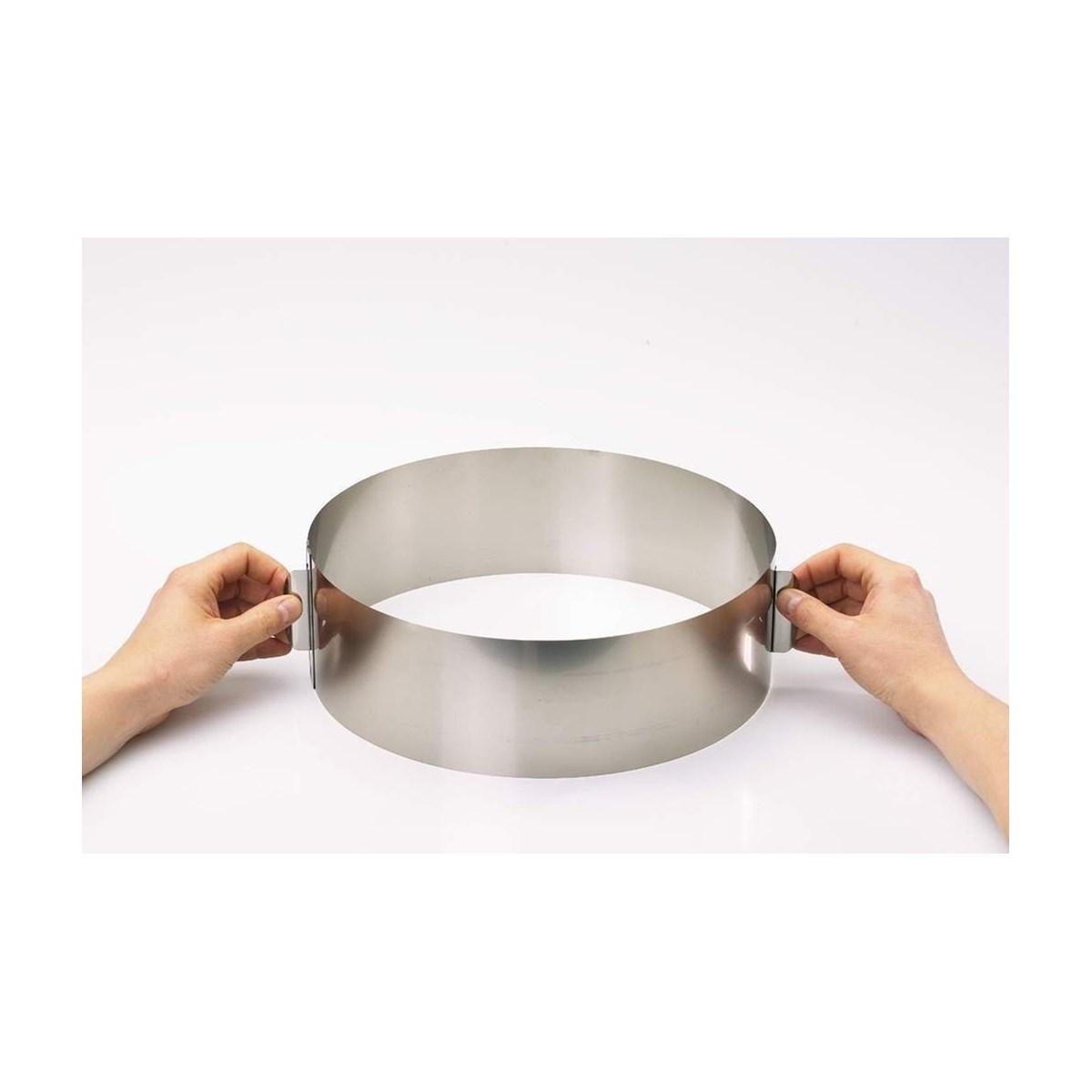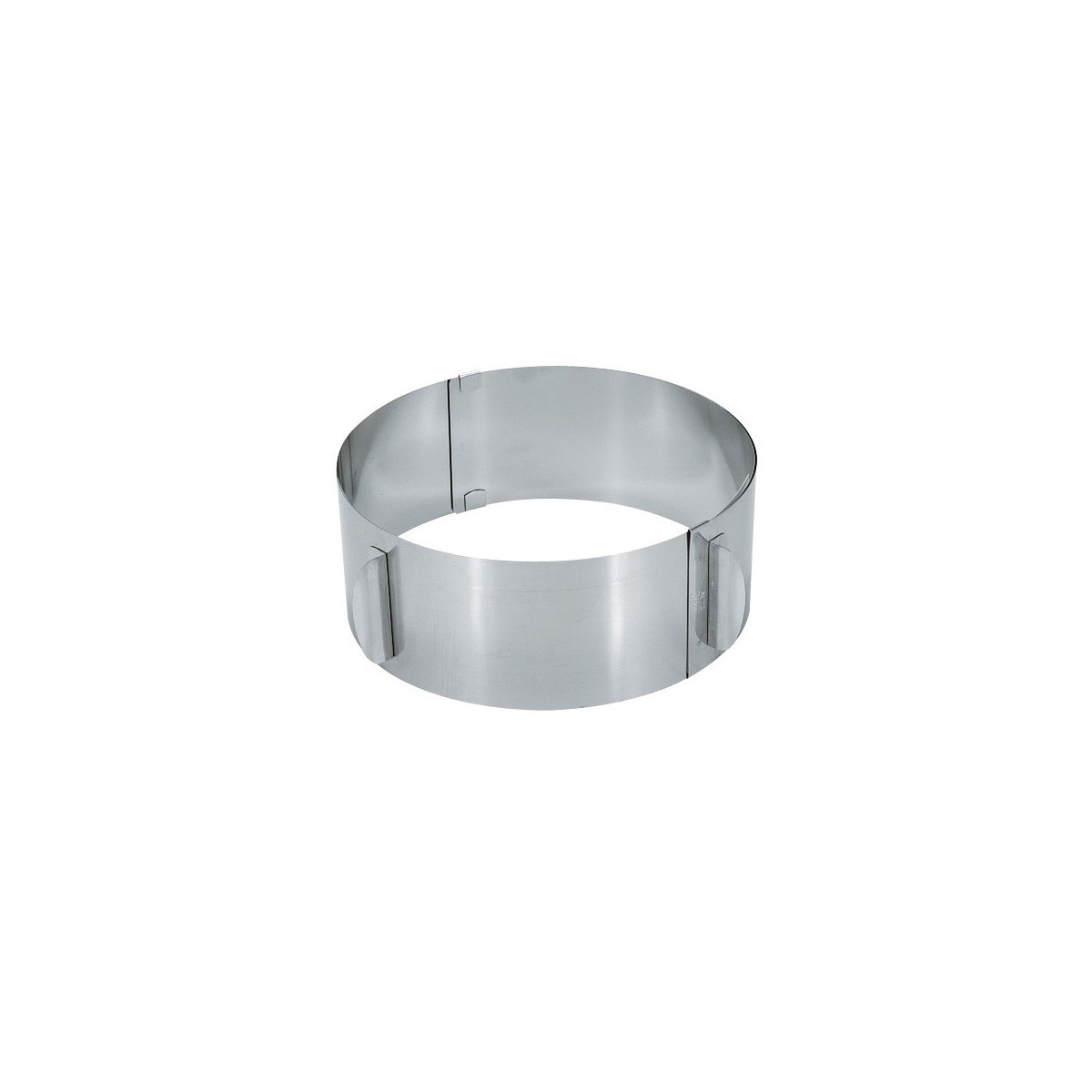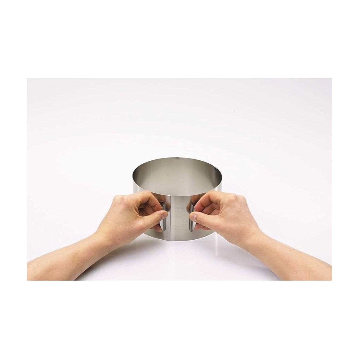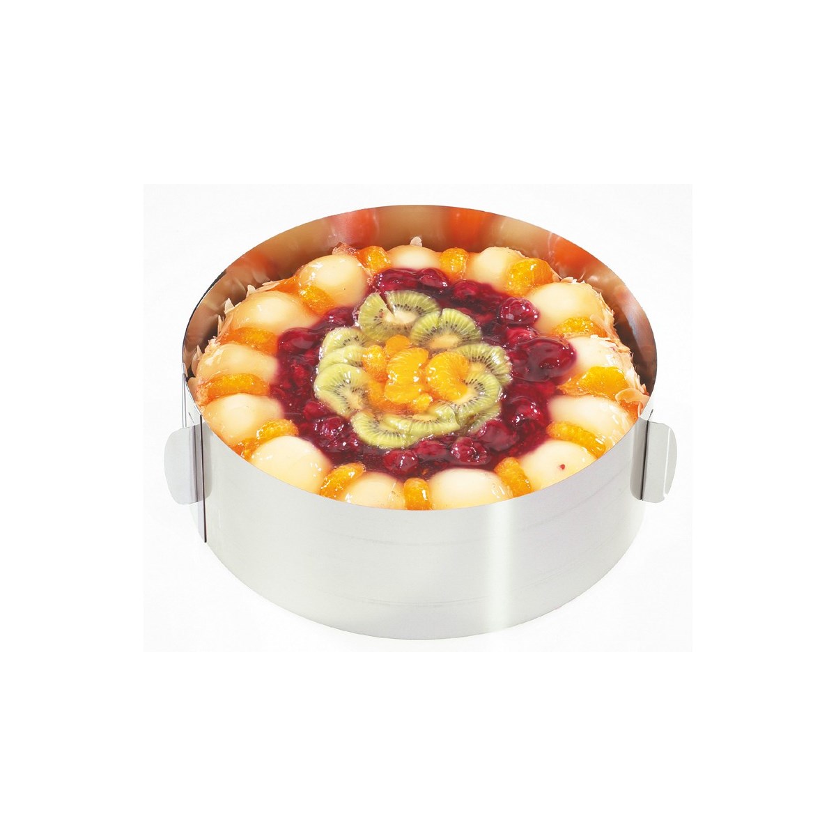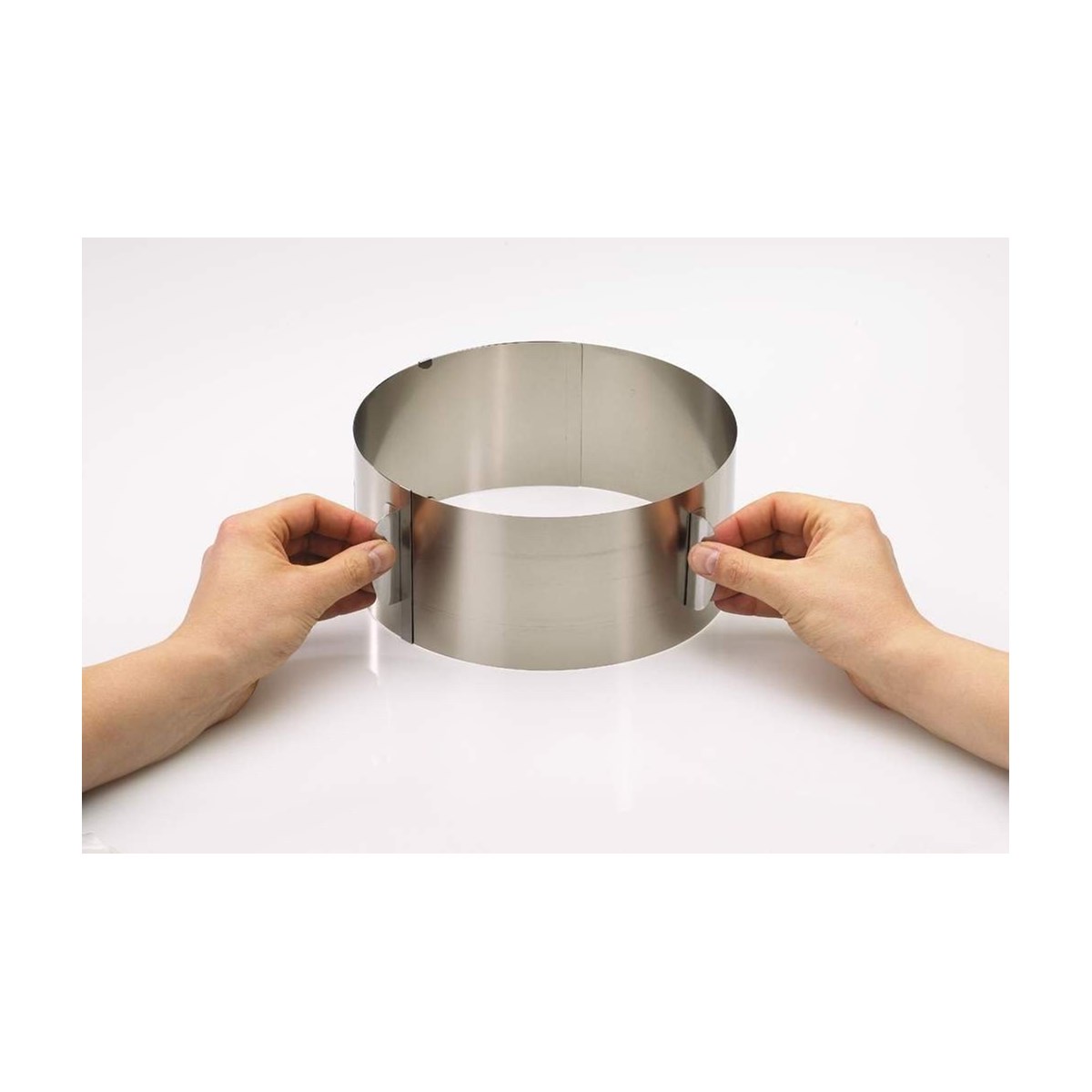Cercle à gâteau - hauteur 8,5 cm. Avec poignées pour un réglage en continu de 16 à 32 cm. Peut être intégralement ouvert pour le nettoyage.