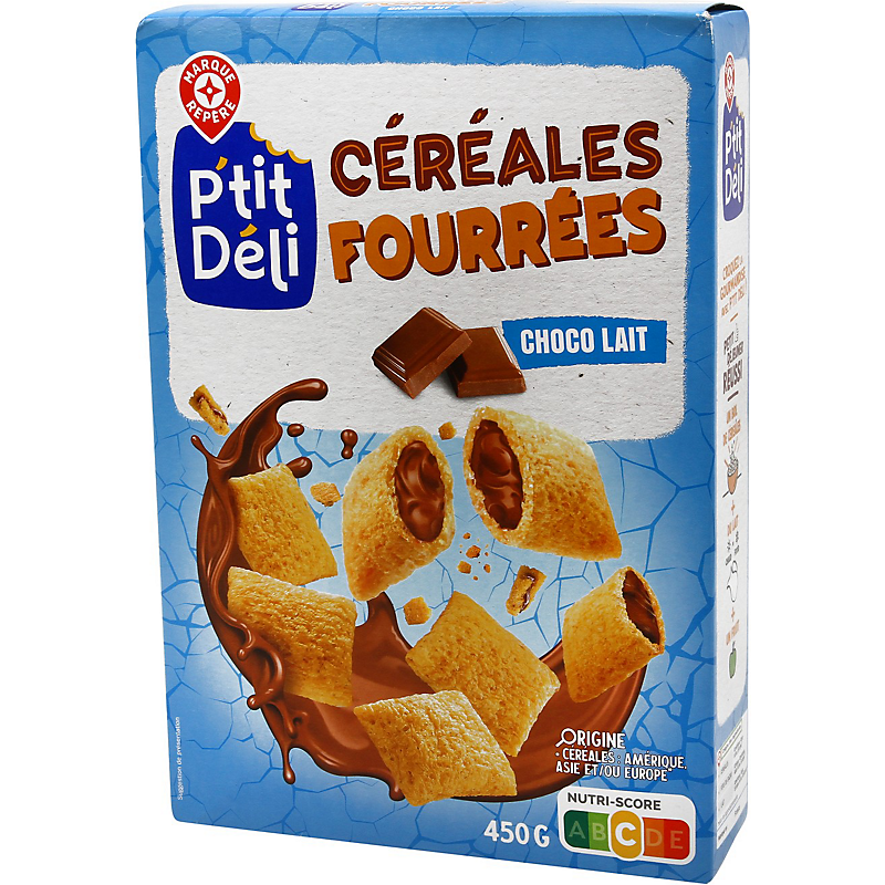 Céréales extrudées avec 35% de fourrage au chocolat au lait P'TIT DELI