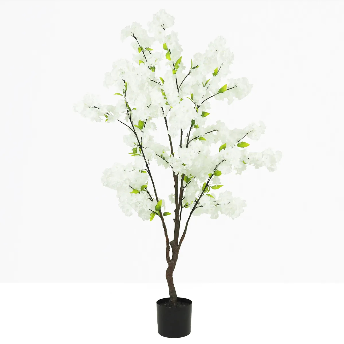 L ?élégance d ?un sakura en pleine floraisonChaque branche de ce cerisier japonais artificiel est ornée de fleurs blanches soigneusement travaillées, aux détails réalistes et à la texture légère. Leur blancheur pure illumine l ?espace, tandis que la silhouette de l ?arbre, aérienne et équilibrée, évoque avec justesse la grâce des sakura en fleurs.