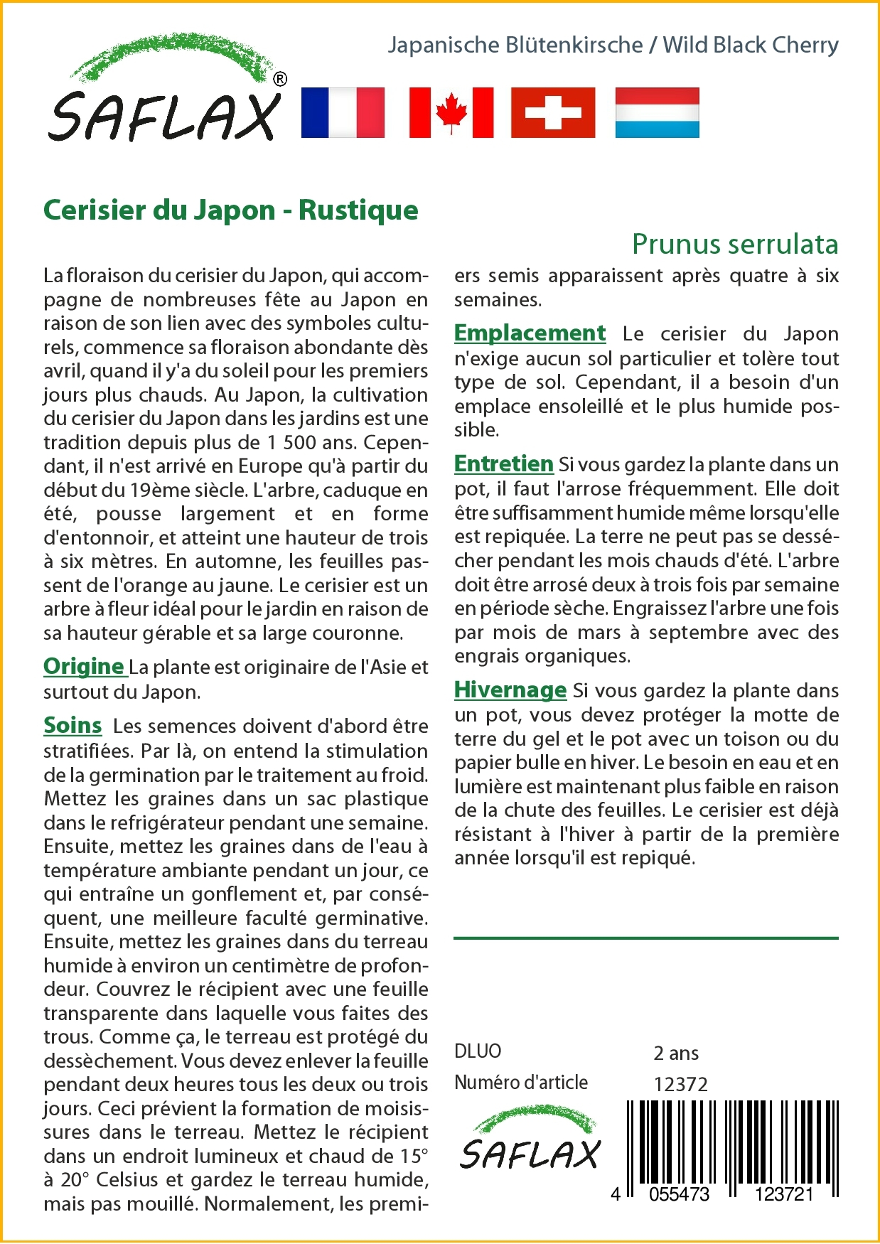 SAFLAX - Cerisier du Japon - 30 graines - Prunus serrulata