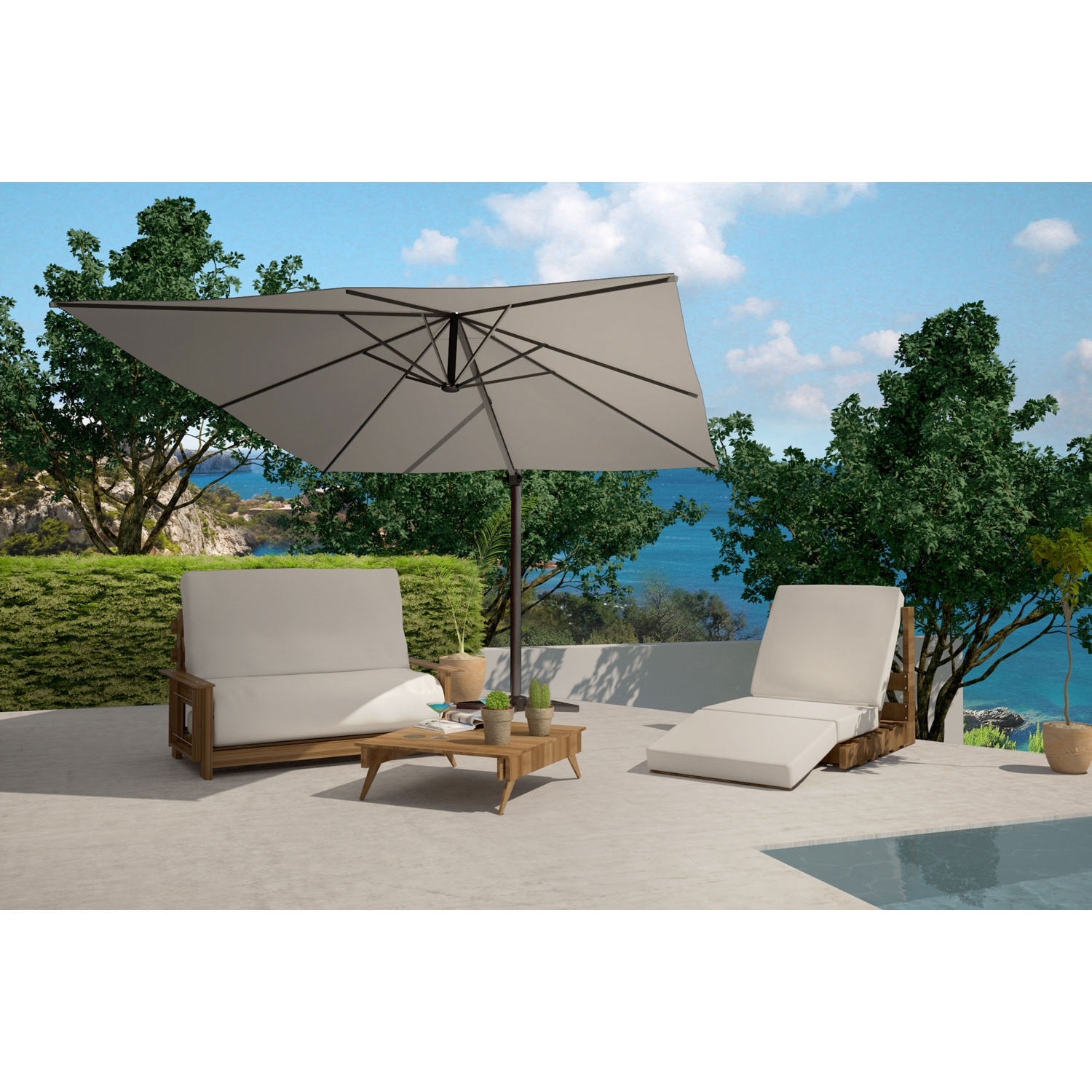 Ce parasol déporté, de forme rectangulaire (3x4m), est l'accessoire indispensable de votre jardin ou votre terrasse, pour se protéger efficacement du soleil ou des petites averses.