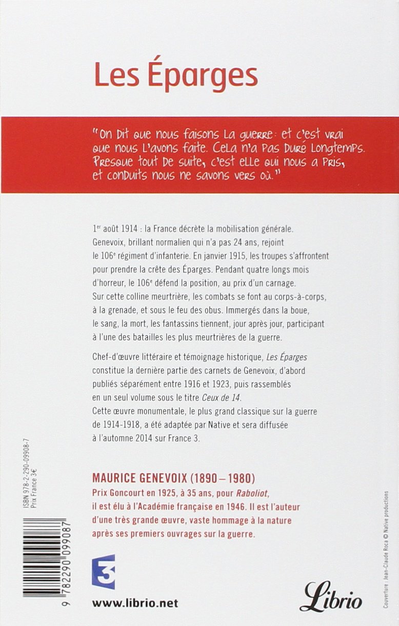 Chef-d'oeuvre littéraire et témoignage historique, Les Éparges constitue la dernière partie des carnets de Genevoix, d'abord publiés séparément entre 1916 et 1923, puis rassemblés en un seul volume sous le titre Ceux de 14.