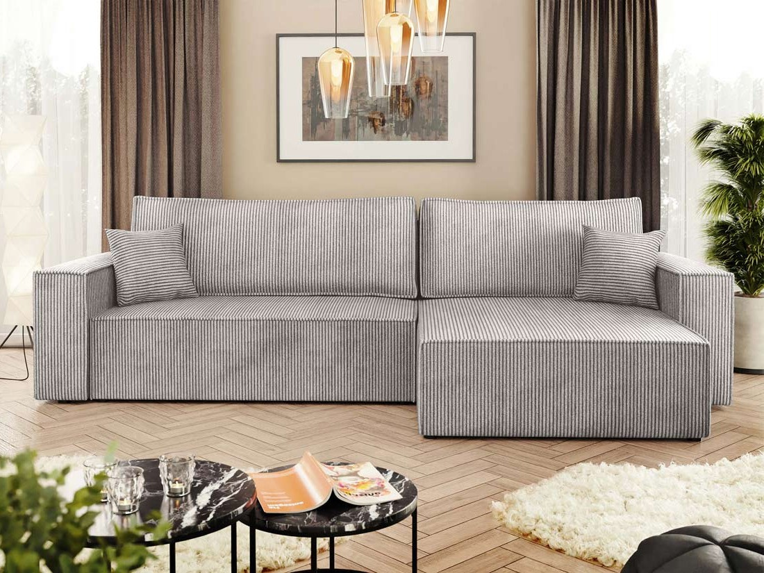 Cezanne - canapé d'angle réversible 5 places convertible avec coffre en velours côtelé