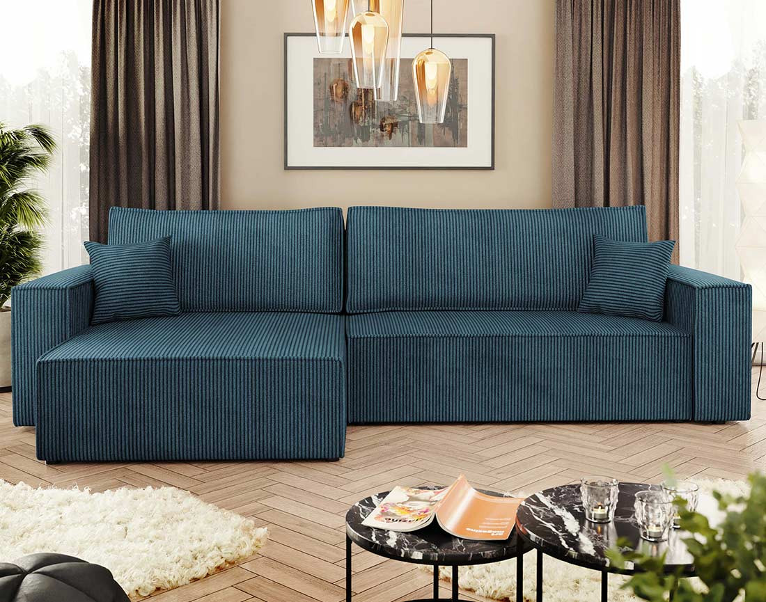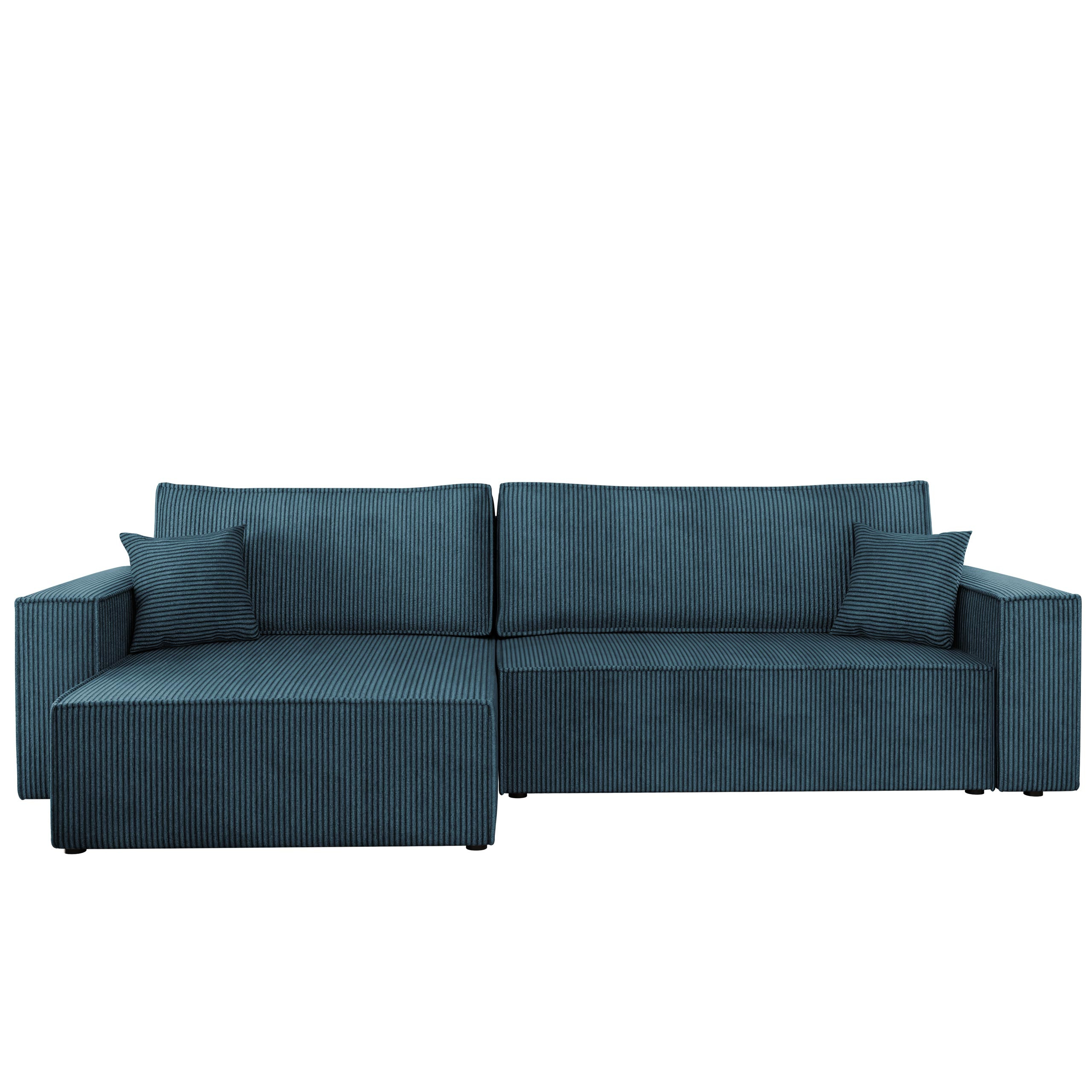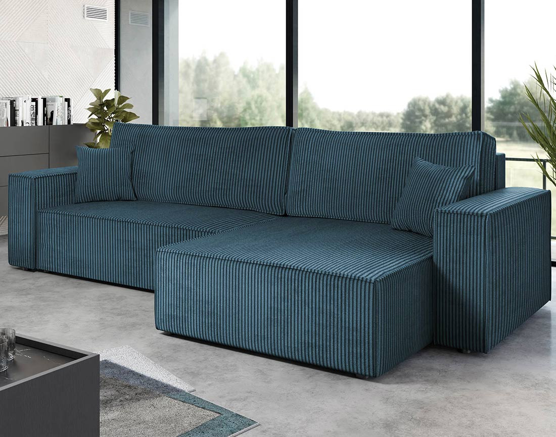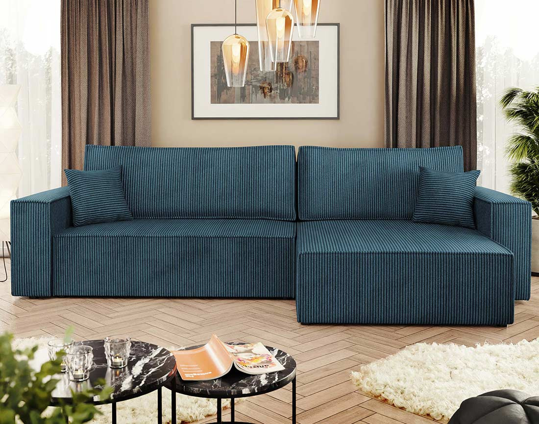 Cezanne - canapé d'angle réversible 5 places convertible avec coffre en velours côtelé