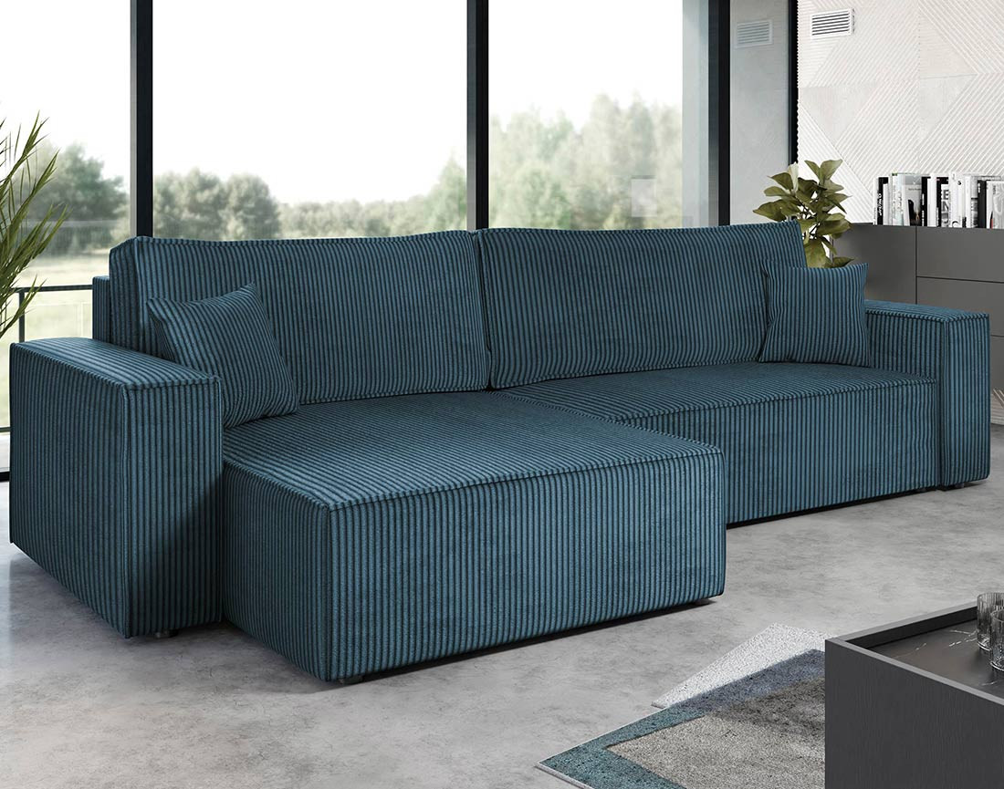 | Libellé | Cezanne - canapé d'angle réversible 5 places convertible avec coffre en velours côtelé |
