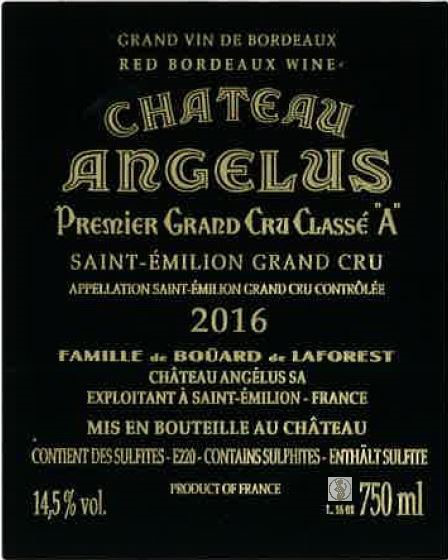 | Libellé | Ch angelus, 2016 - Saint-Emilion Grand Cru AOP - Rouge - 75 cl |