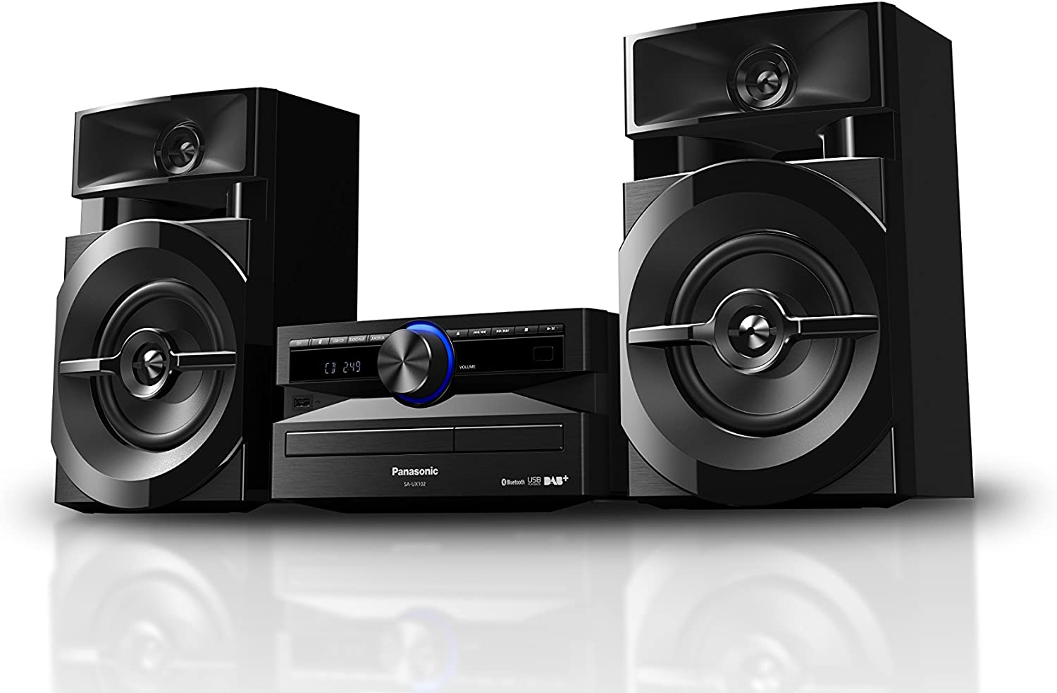 CHAINE HIFI Panasonic SCUX102EX Panasonic SC-UX102E-K. Couleur du produit: Noir. Puissance évaluée de RMS: 300 W, Type d'écouteurs: 2-voies, Diamètre du woofer: 13 cm. Type de bandes supportées: DAB+, FM. Type d'écran: FL. Formats audio pris en charge: MP3, Types de disque supportés: CD, CD-DA, CD-R, CD-RW