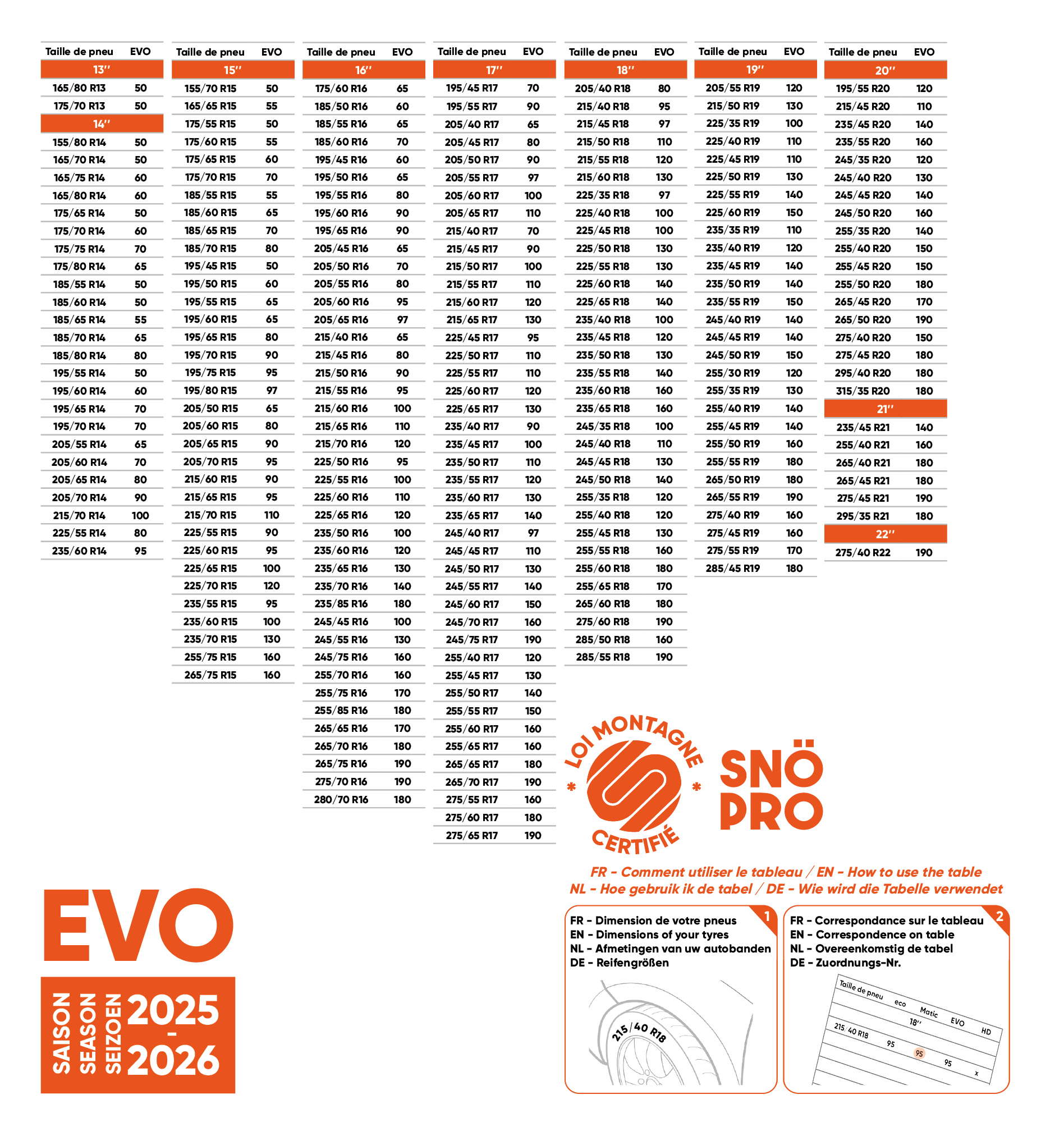 | Libellé | Chaines neige 9mm EVO 95 - automatique - 205 50 R16, 215 55 R16, 225 45 R17 et + |