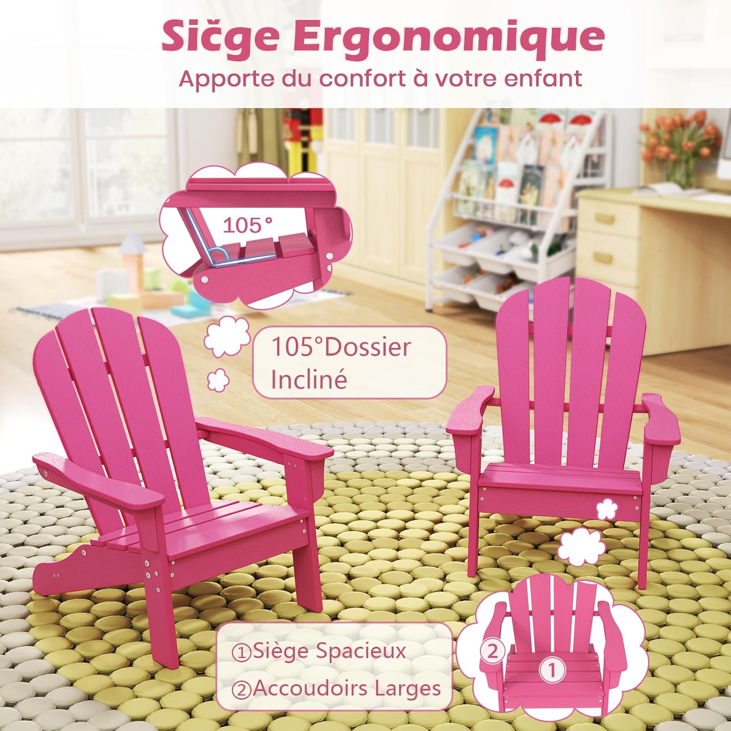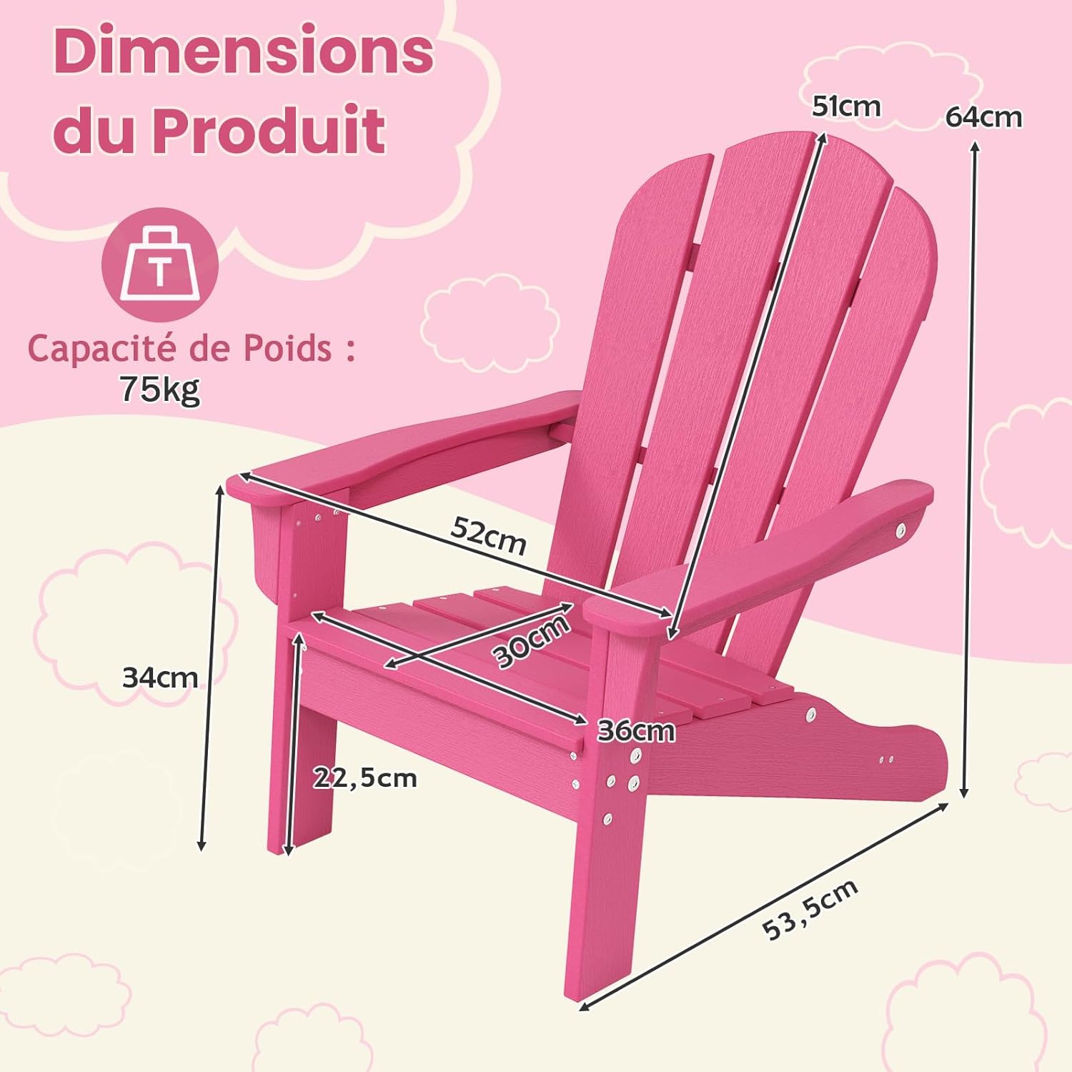 | Libellé | Chaise adirondack exterieur pour enfants fauteuil de jardin en hdpe résistante enfant pour 3-8 ans rose |