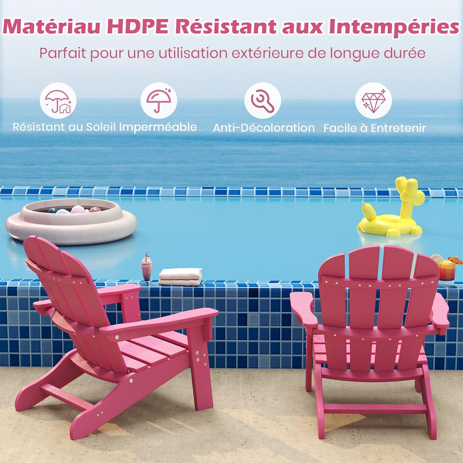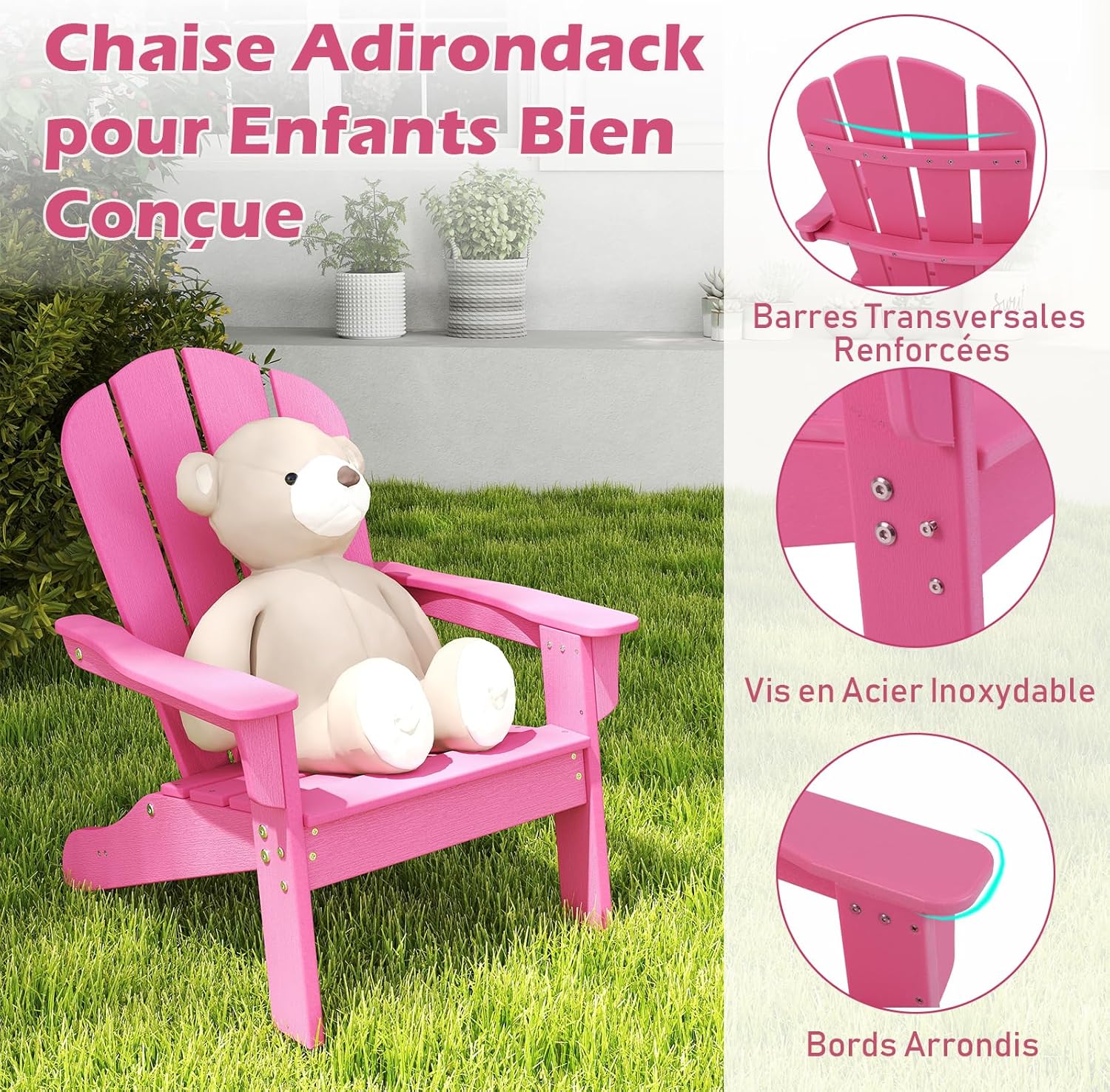 Chaise adirondack exterieur pour enfants fauteuil de jardin en hdpe résistante enfant pour 3-8 ans rose
