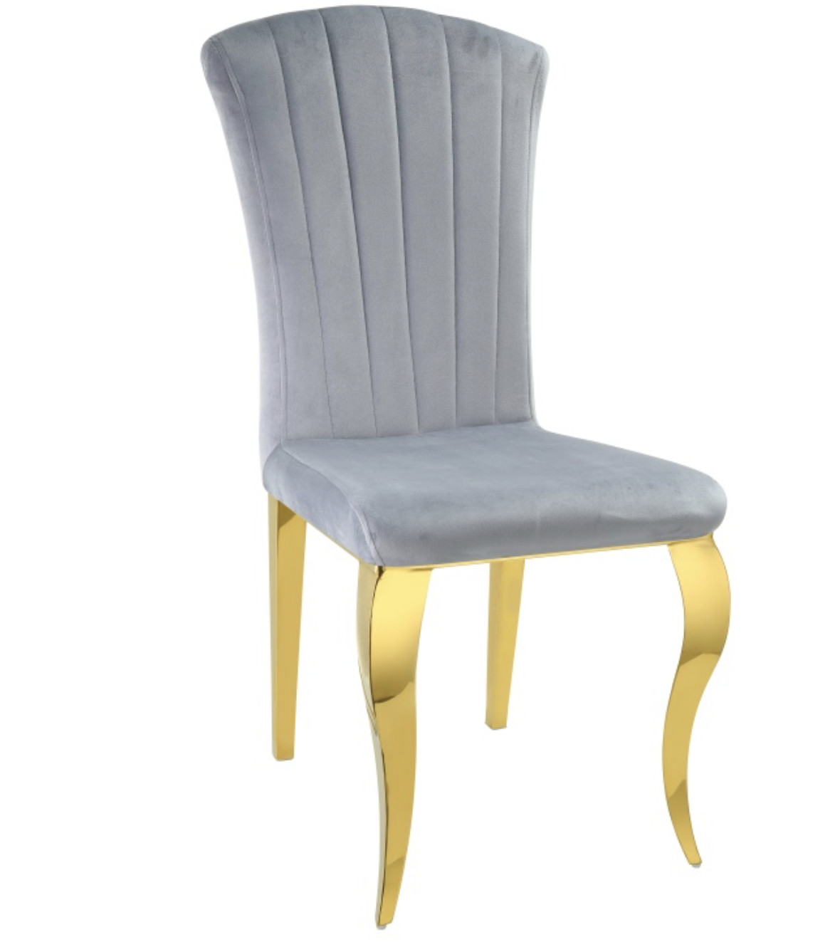 Libellé Chaise baroque en velours et pieds métal doré brillant Kania - lot de 6-Couleur Gris clair
