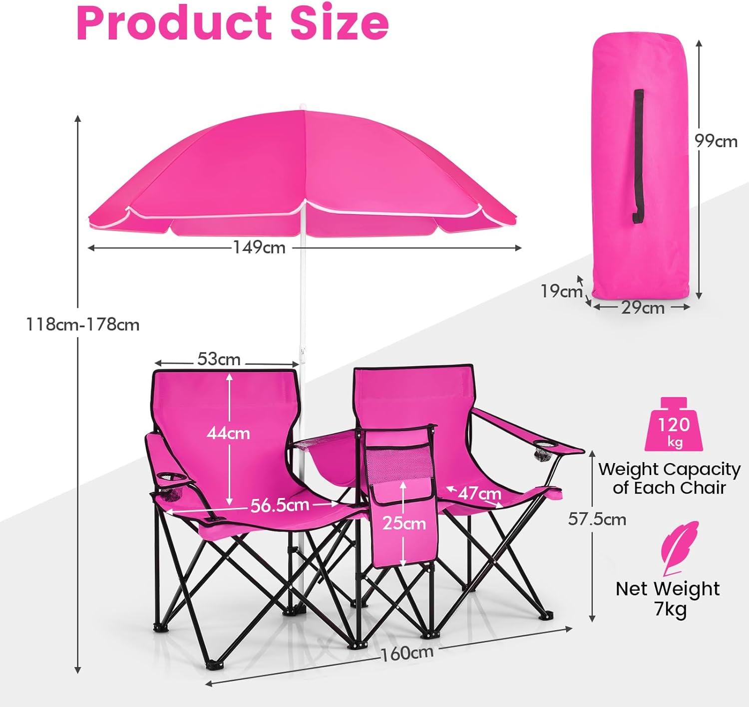 | Libellé | Chaise camping pliante pour 2 personnes, fauteuil camping avec parasol, porte-gobelet, sac isotherme,rose |
