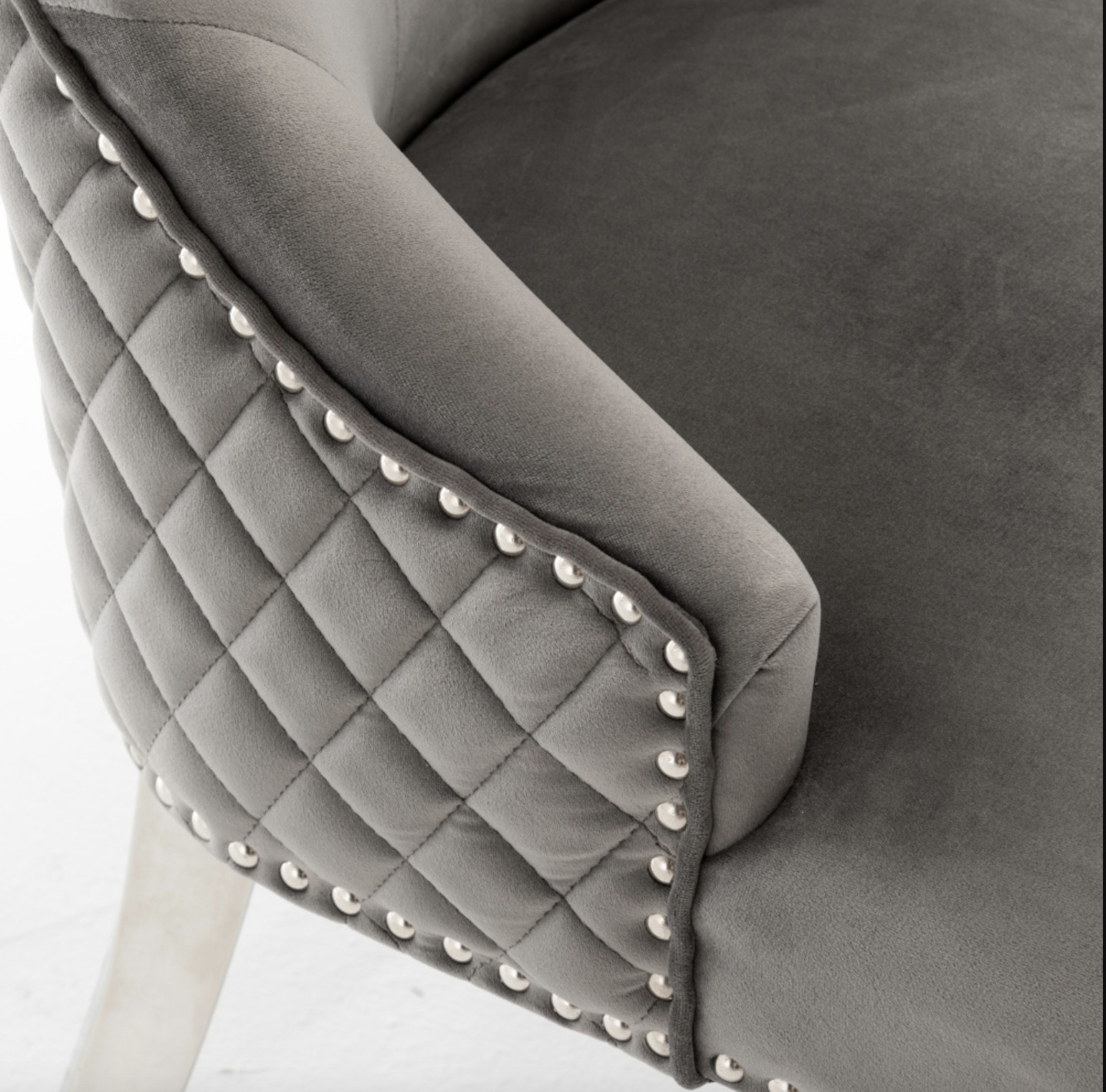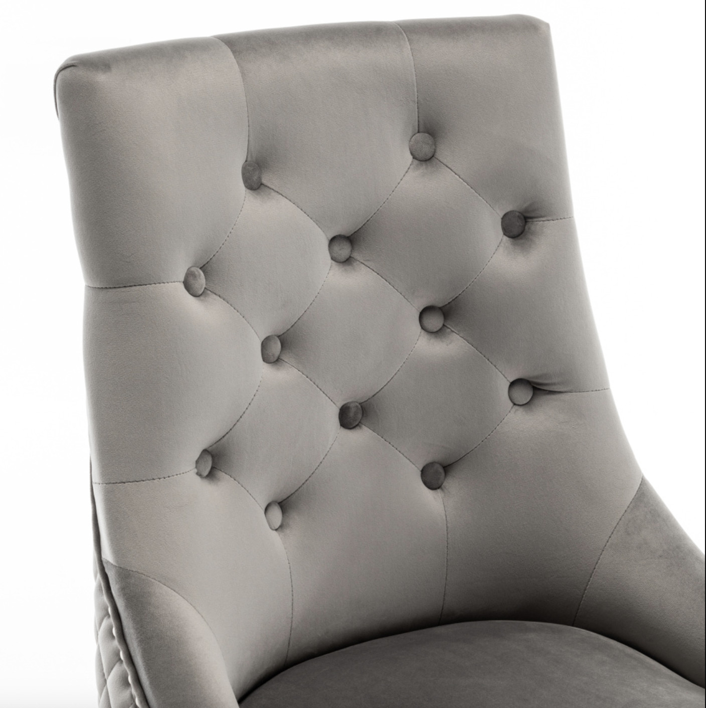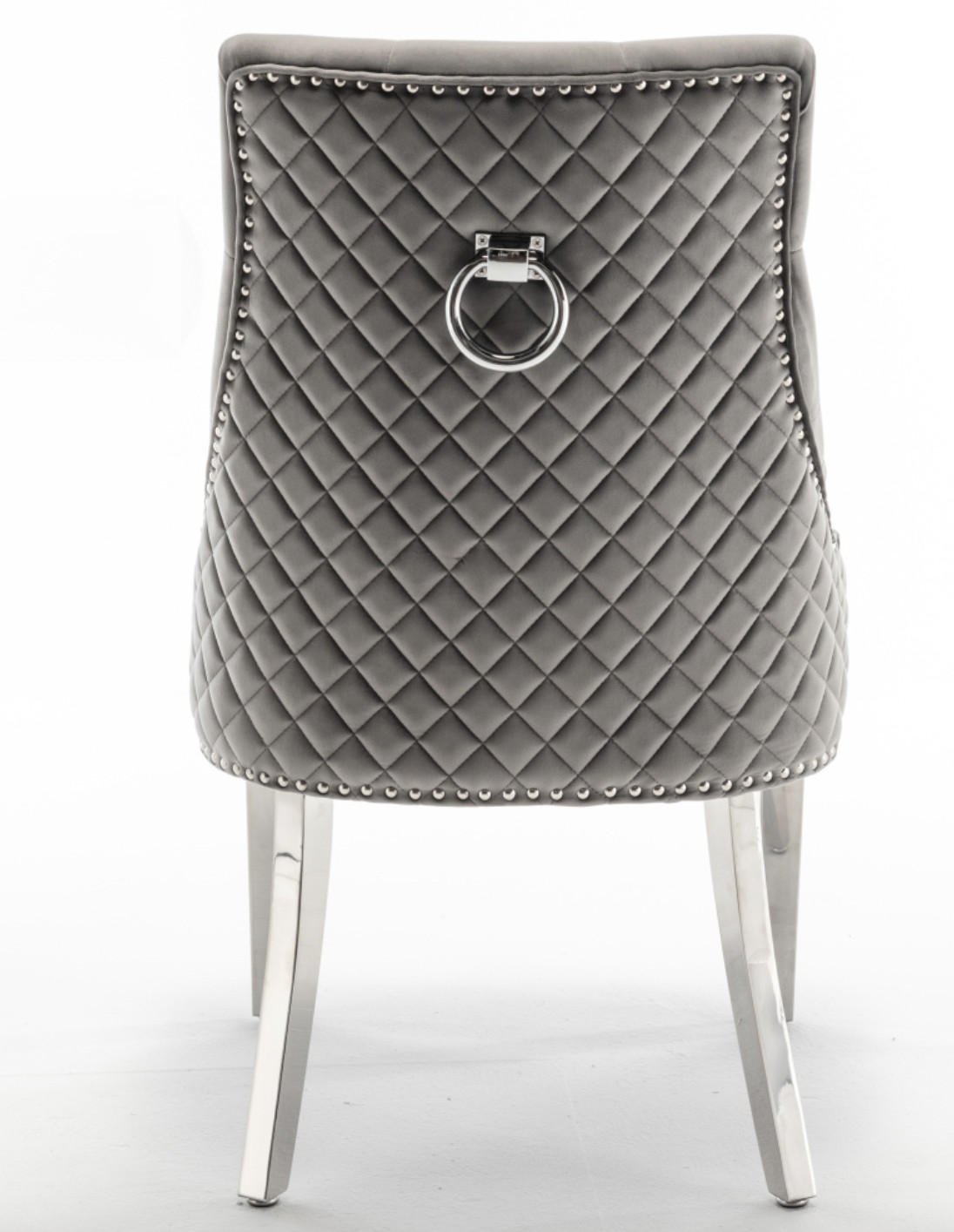 Libellé Chaise capitonnée velours avec anneau au dos et pieds métal chromé Royal - Lot de 2-Couleur Gris foncé