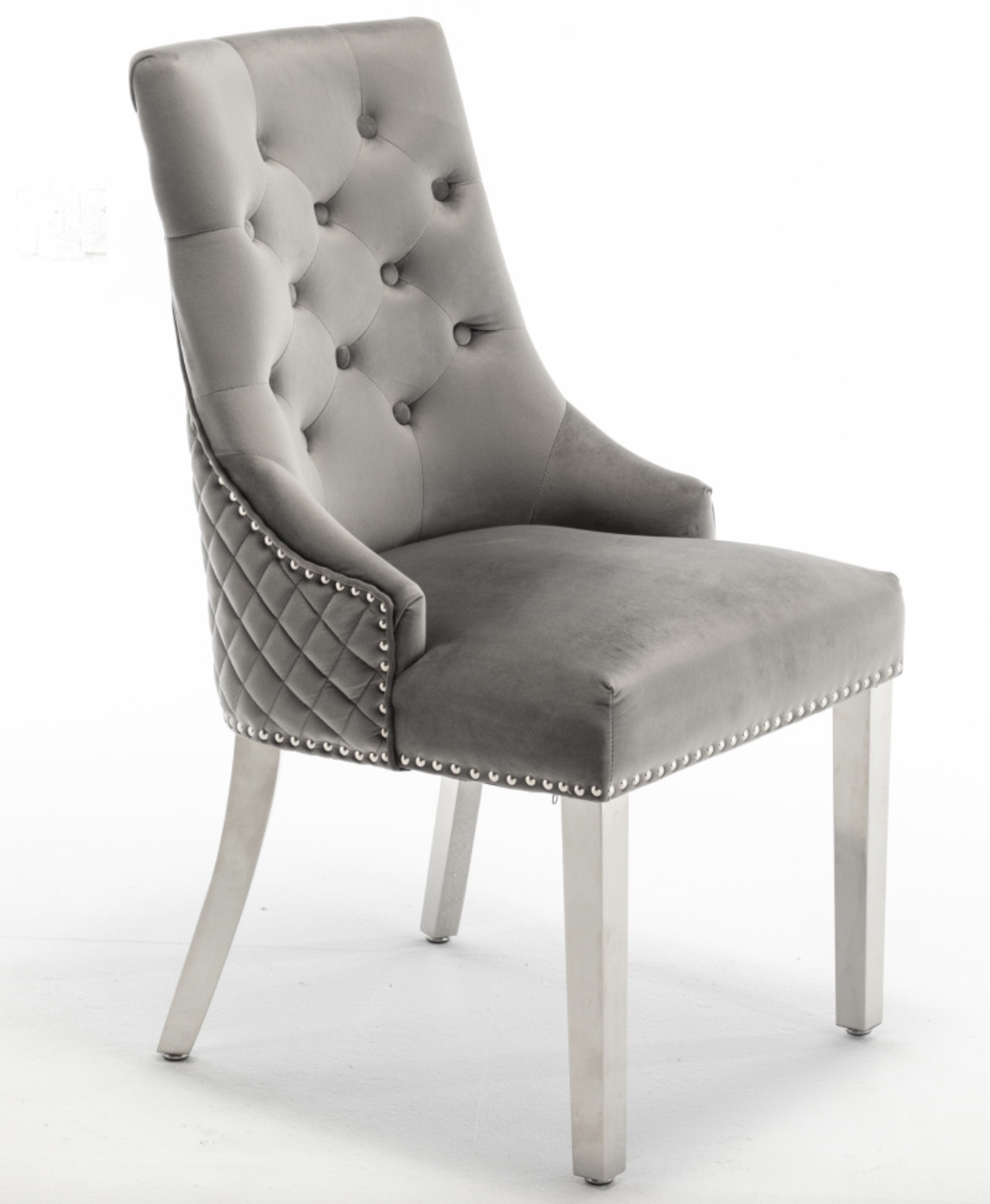 Chaise capitonnée velours avec anneau au dos et pieds métal chromé Royal - Lot de 2-Couleur Gris foncé