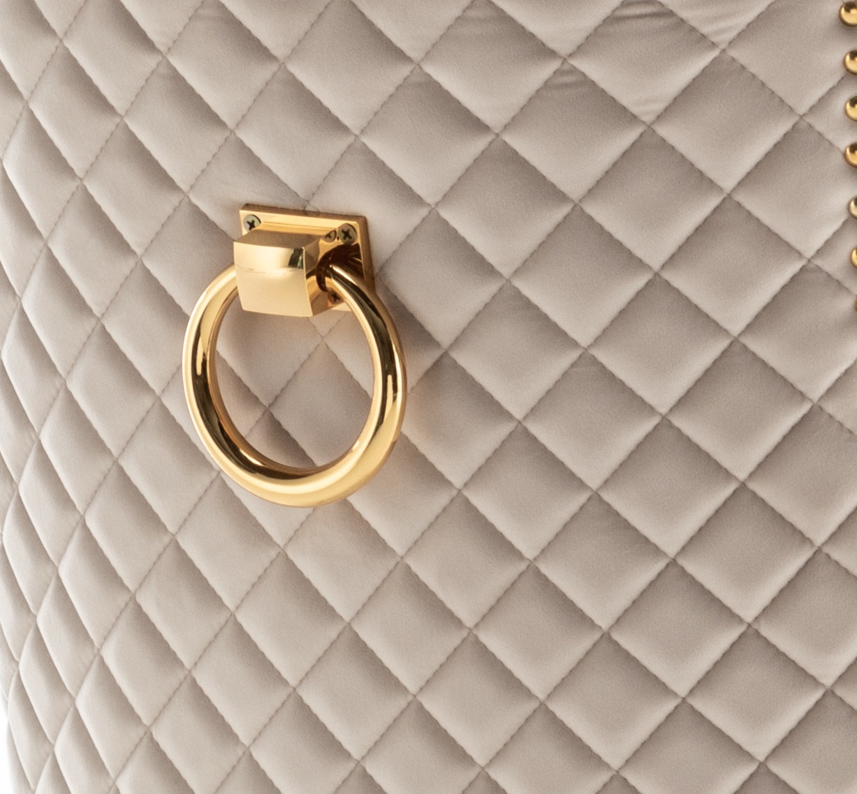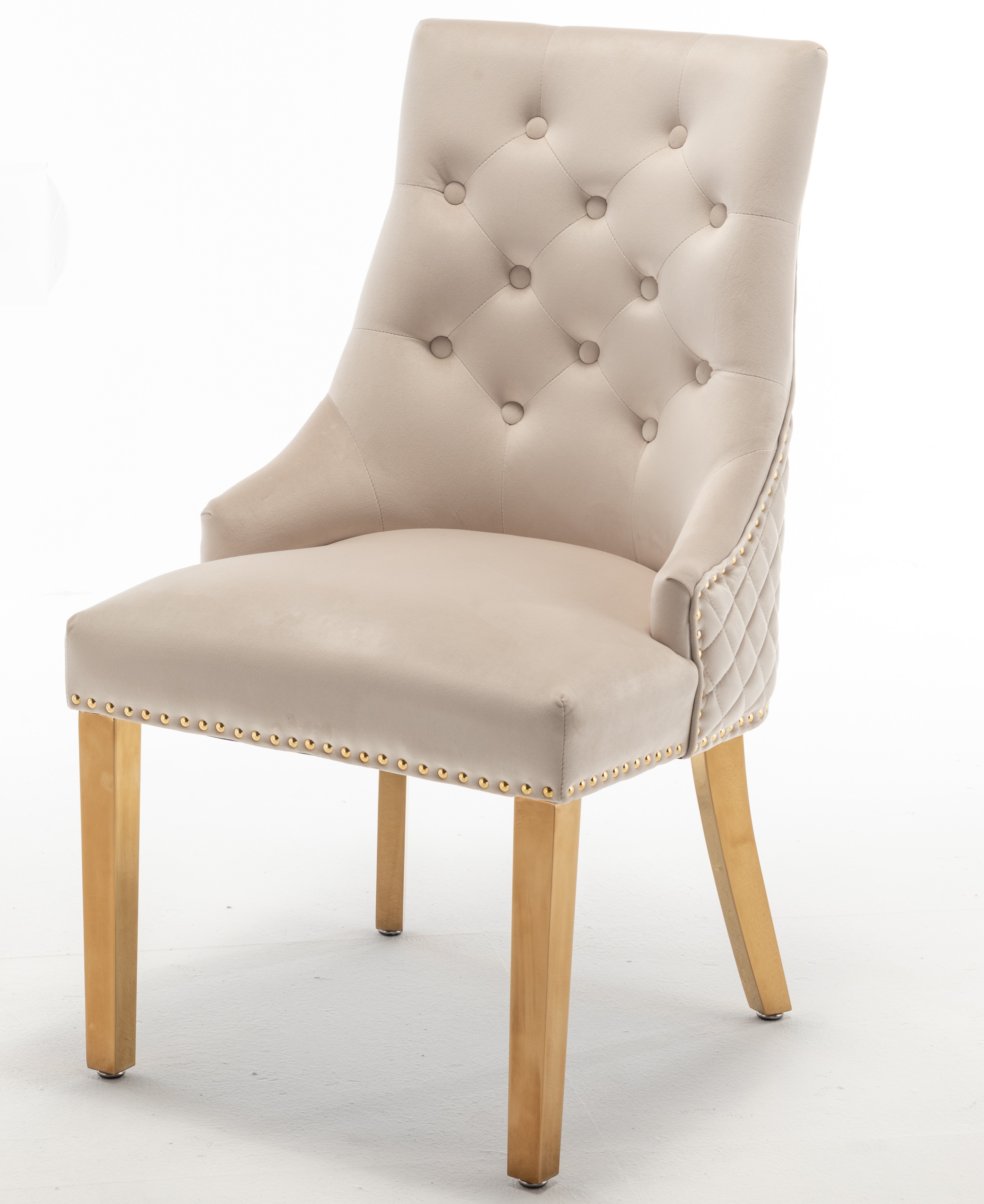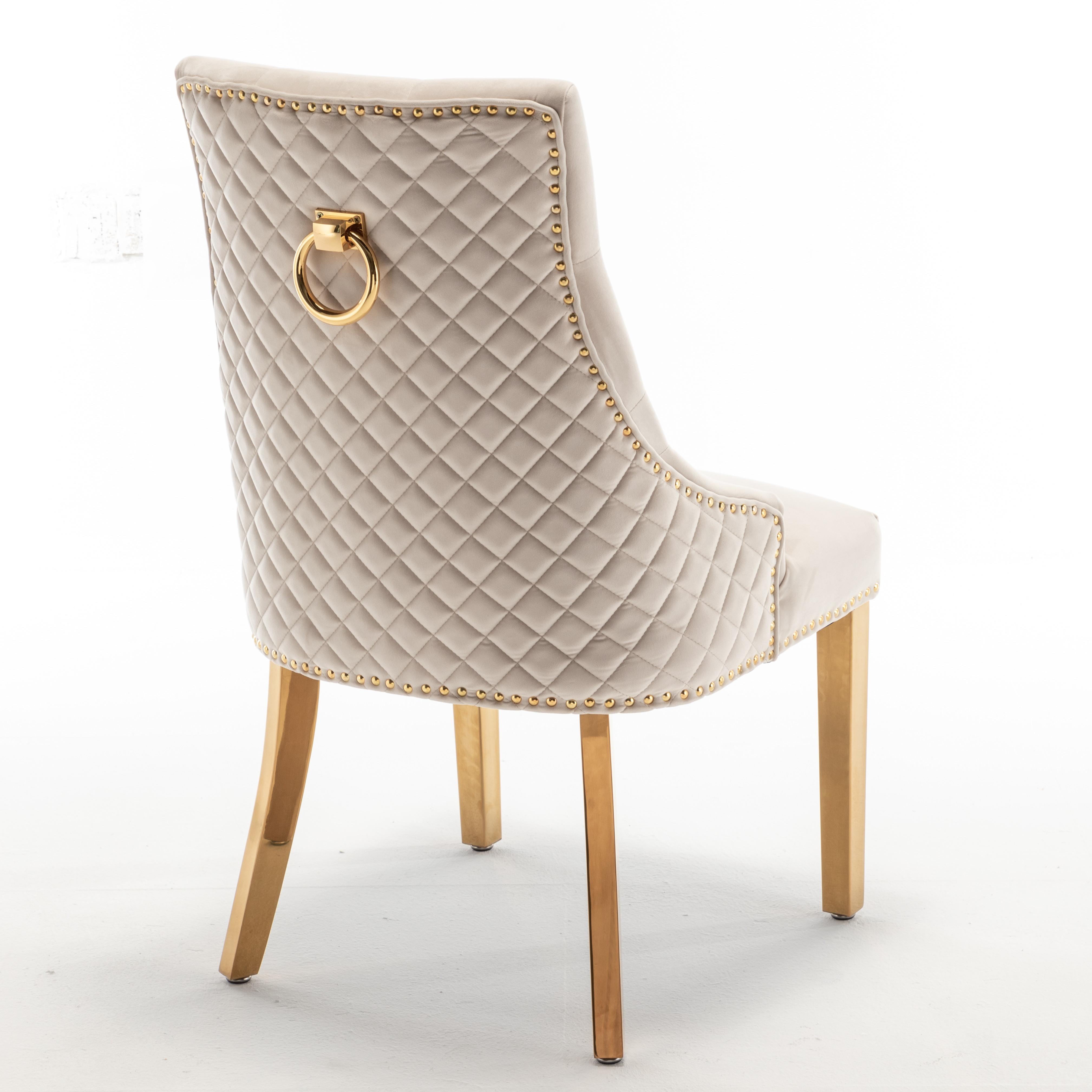 Chaise capitonnée velours beige clair avec anneau au dos et pieds métal doré Royal - Lot de 2
