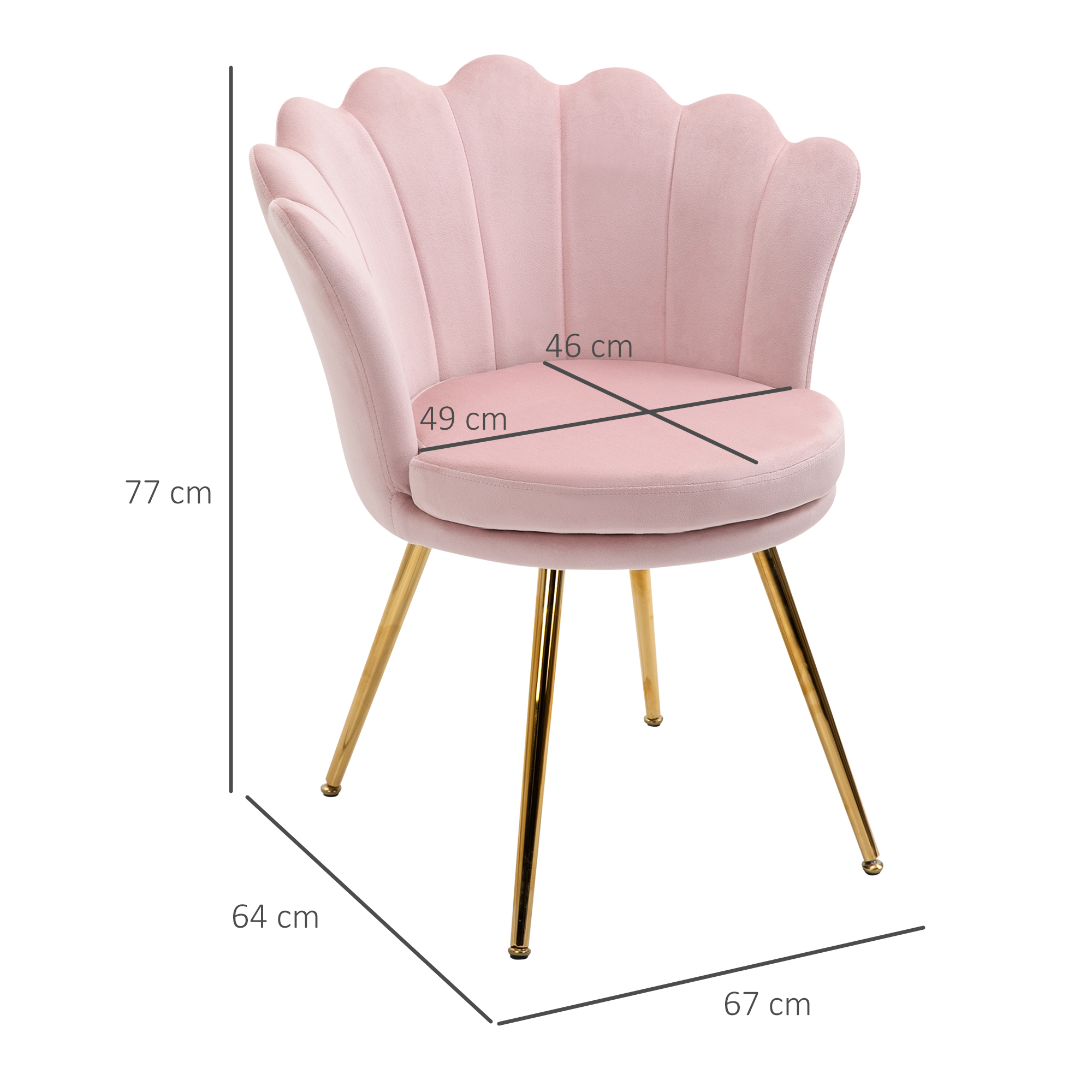 Chaise coquillage chaise design pieds métal dorés effilés velours rose poudré