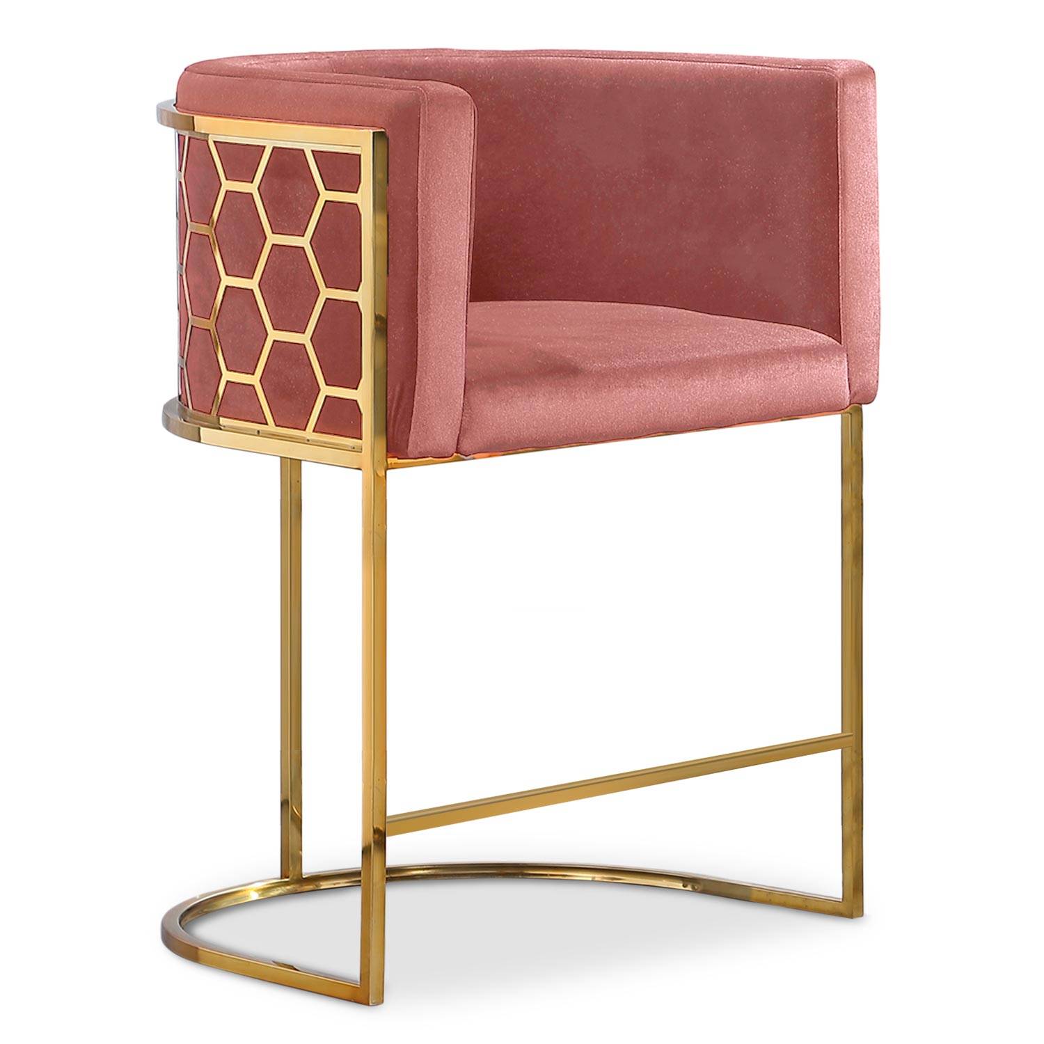 Chaise de bar design Honey Velours Rose et Métal Or
