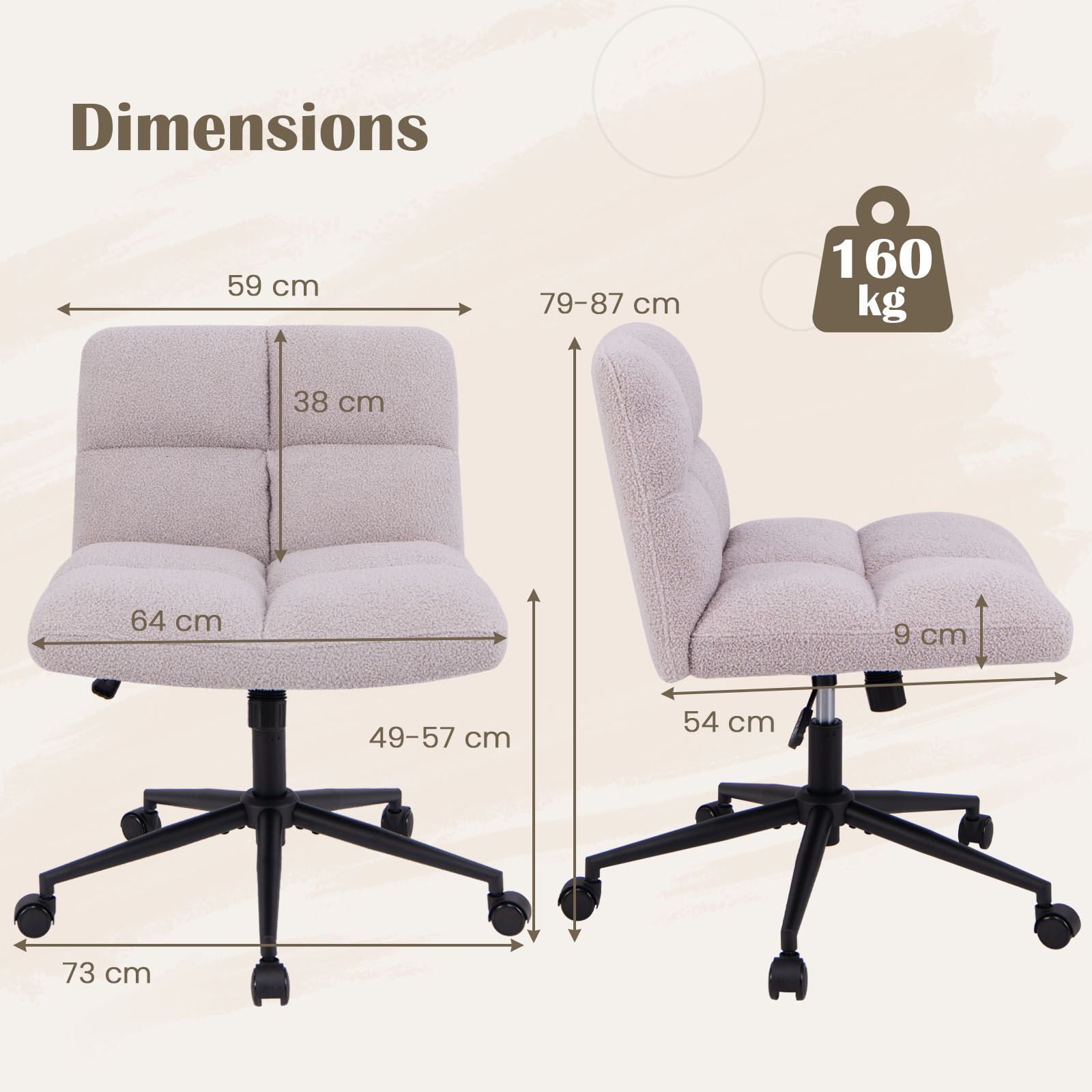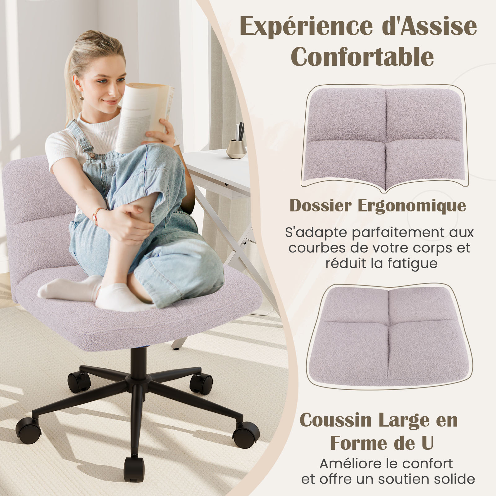 ----------Cette chaise de bureau pivotante est dotée d'un coussin de siège rembourré pour un confort inégalé. Drapée d’un molleton moelleux, elle apporte une touche d'opulence à votre espace. Offrant une hauteur réglable et une fonction de bascule, elle répondra à vos besoins. Construite pour durer avec une base en métal robuste à 5 griffes, elle assure stabilité et durabilité. Les roulettes flexibles assurent la mobilité, vous permettant de glisser à travers la pièce. Élevez votre espace avec cette chaise à pieds croisés, rembourrée et moderne, conçue pour allier fonctionnalité et style.