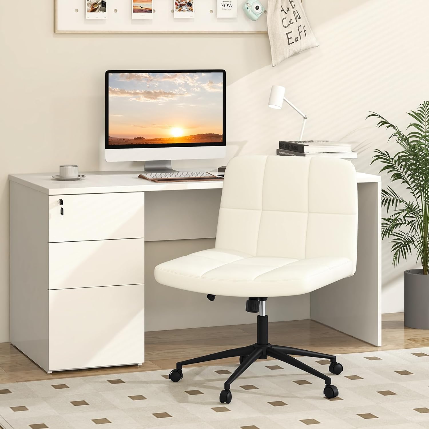 Chaise de bureau avec roulettes, chaise pivotante tapissée en PU hauteur réglable beige