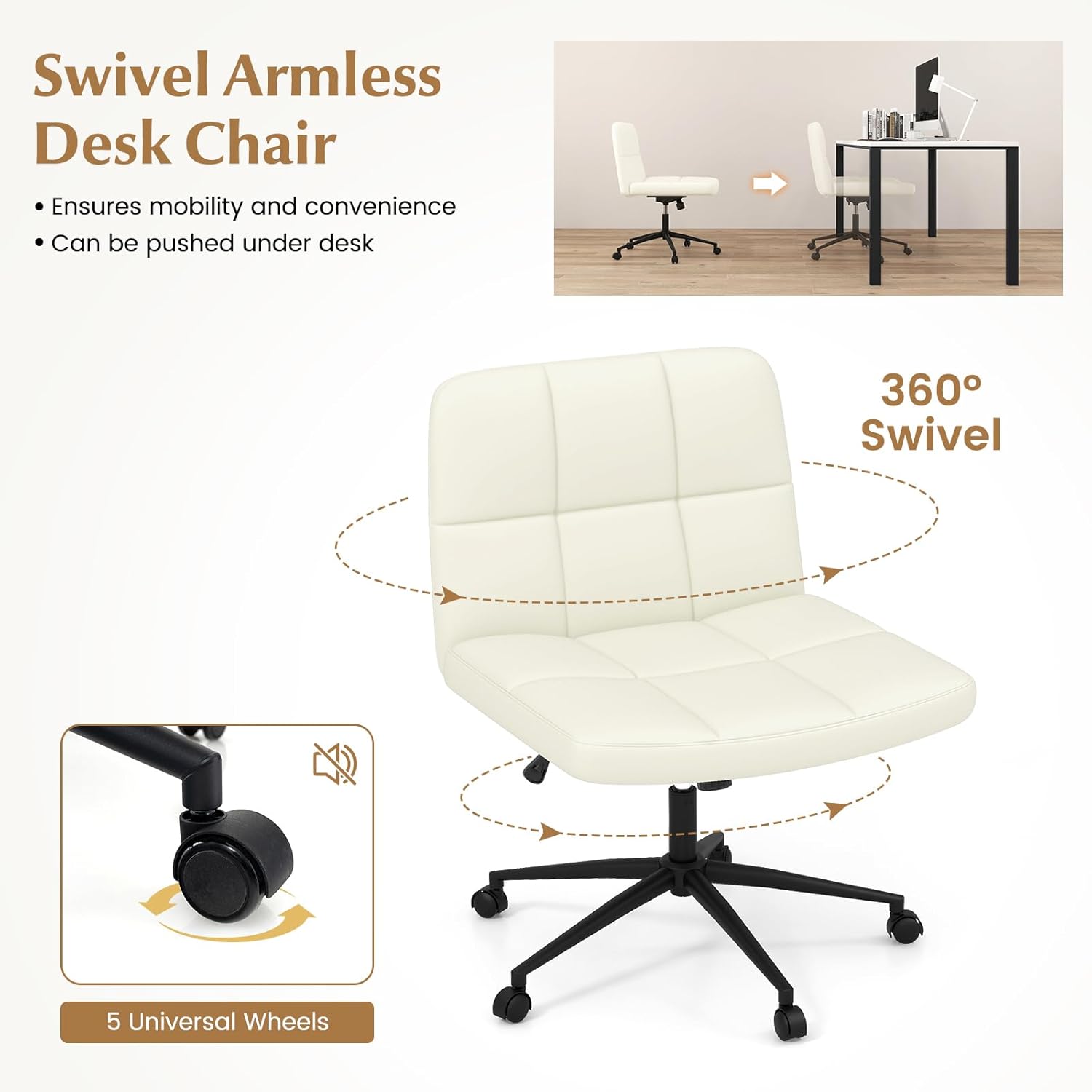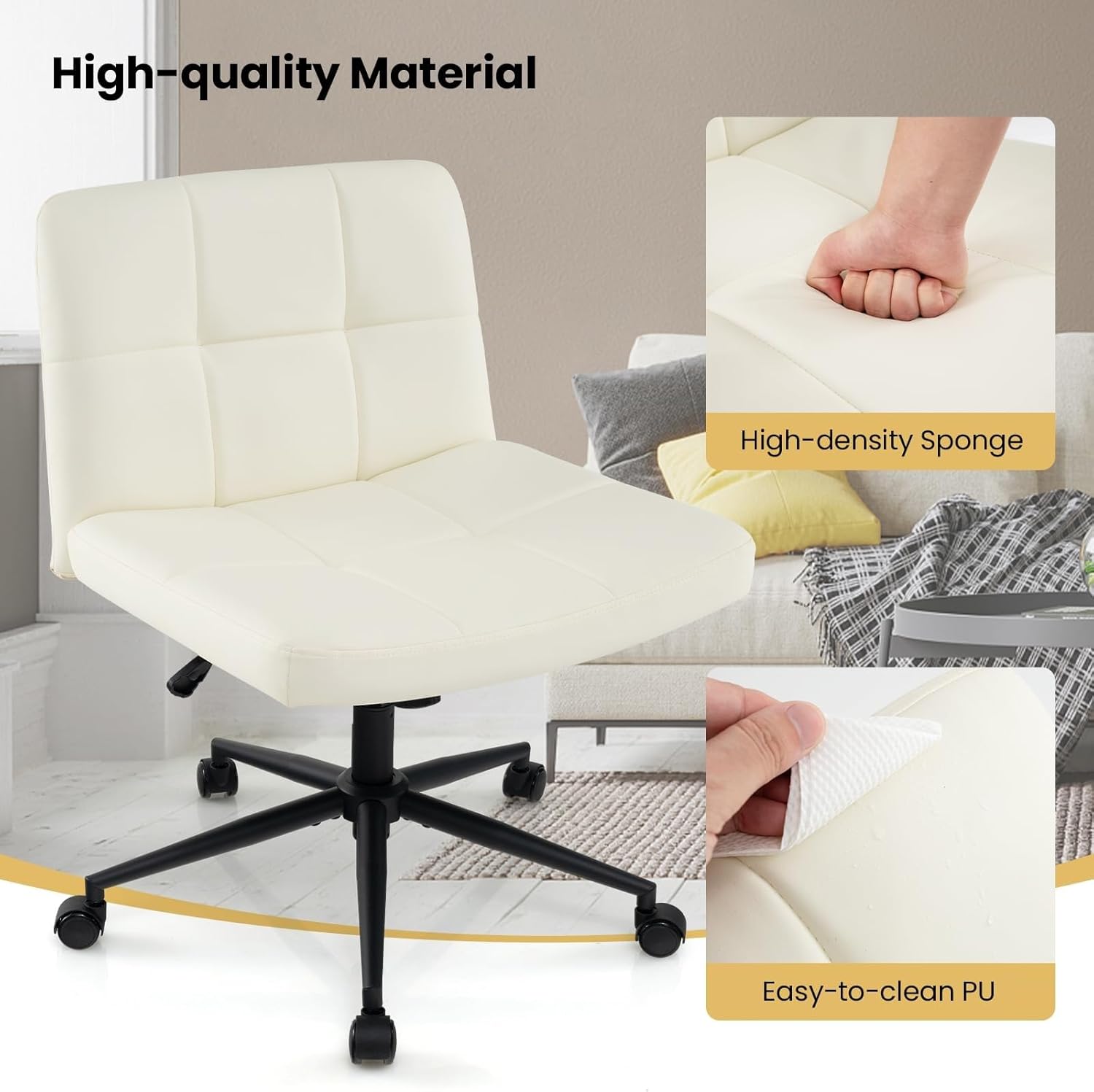 Élevez votre maison ou votre bureau avec notre chaise de bureau pivotante à pieds croisés. Contrairement aux chaises de bureau ordinaires, notre chaise rembourrée dispose d'un large siège en forme de U, vous permettant de vous asseoir confortablement avec les jambes croisées. Avec une hauteur réglable de 48 cm à 56 cm, un angle de rotation de 360 degrés et un angle d'inclinaison vers l'arrière de 100° à 120°, la chaise de bureau assure un confort maximal avec des réglages personnalisables de hauteur et d'angle. En utilisant le vérin à gaz de qualité, vous pouvez ajuster sans effort la hauteur du siège à la position souhaitée, répondant aux besoins de travail, d'études ou de jeux. Grâce à la base métallique à 5 pieds et aux roues universelles, vous pouvez déplacer la chaise en douceur.
