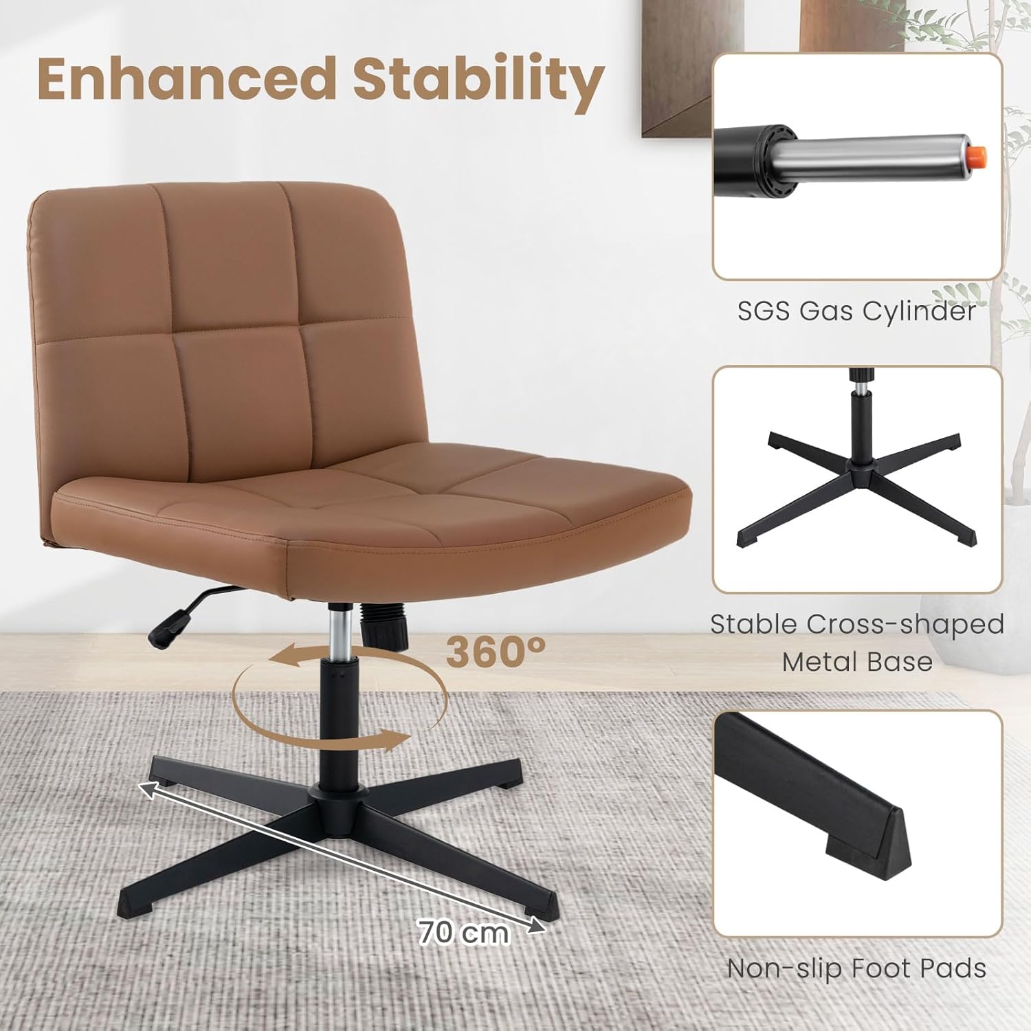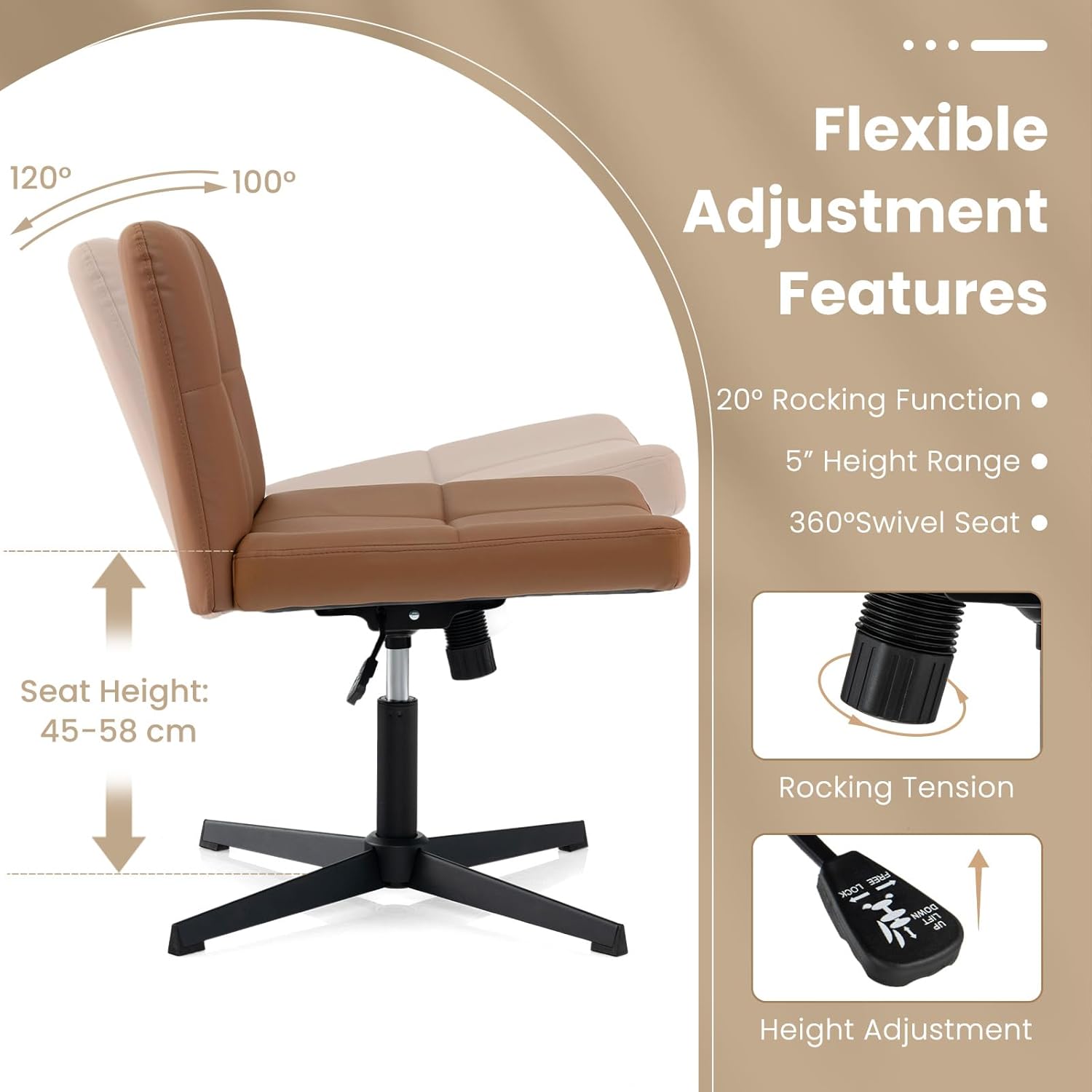 Améliorez votre expérience d'assise avec cette chaise exquise à pieds croisés, conçue pour combiner style et confort sans effort dans n'importe quel espace. La chaise de bureau offre une hauteur d'assise réglable qui varie de 45 cm à 58 cm, assurant une position assise personnalisée pour un confort prolongé. Le dossier introduit un mécanisme de bascule pour une inclinaison détendue. Le rembourrage épais du siège, rempli d'éponge haute densité, offre un confort optimal. Construit avec un cadre métallique durable et une base croisée stable, la chaise supporte une capacité de poids allant jusqu'à 150 kg. Avec un style moderne contemporain et un profil élégant, cette chaise de loisirs ajoute une touche de luxe discrète à n'importe quelle pièce. Convient pour divers environnements, transforme n'importe quel coin avec son attrait charmant.