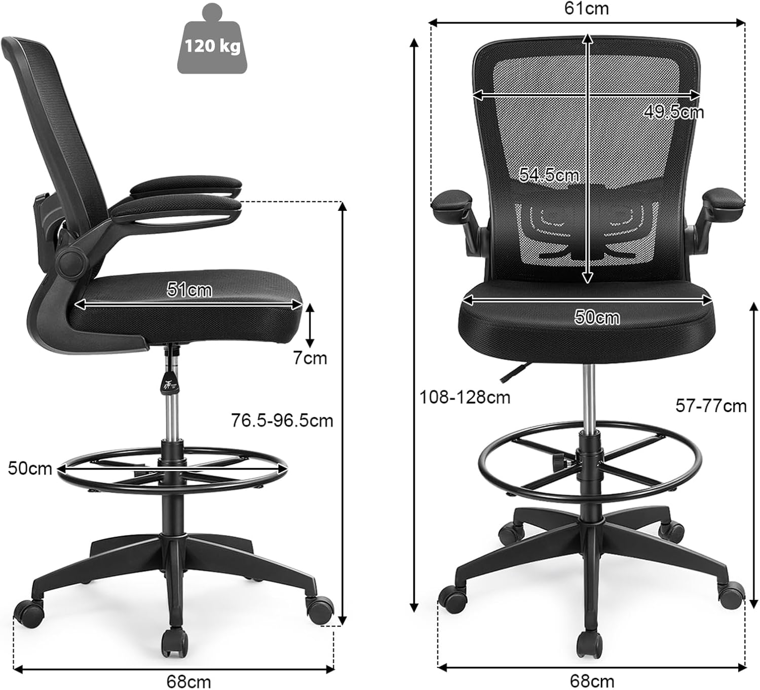 Dimensions de la chaise de bureau totale : 68 x 108 – 128 cm (Dx A).