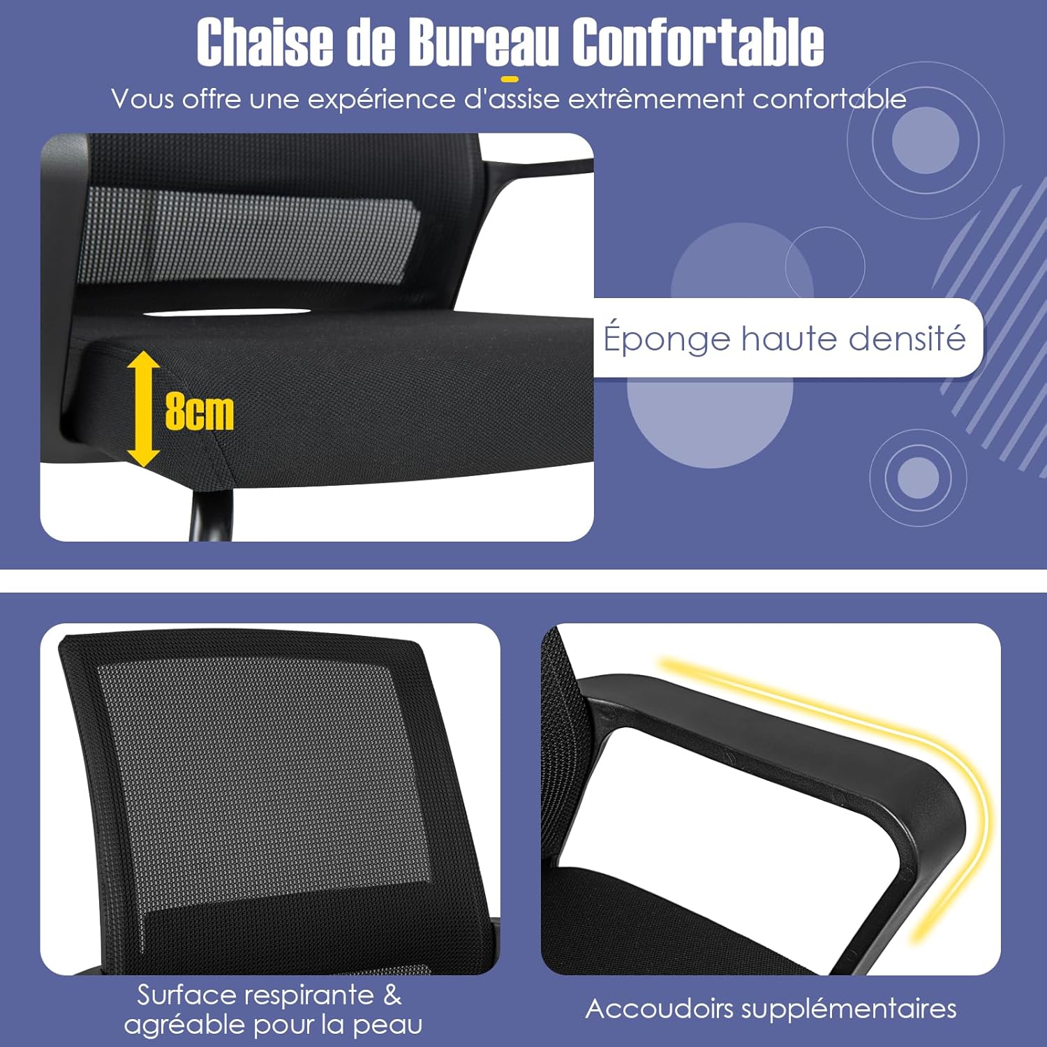 | Libellé | Chaise de bureau avec support lombaire - chaise de conférence avec dossier en maille respirante |