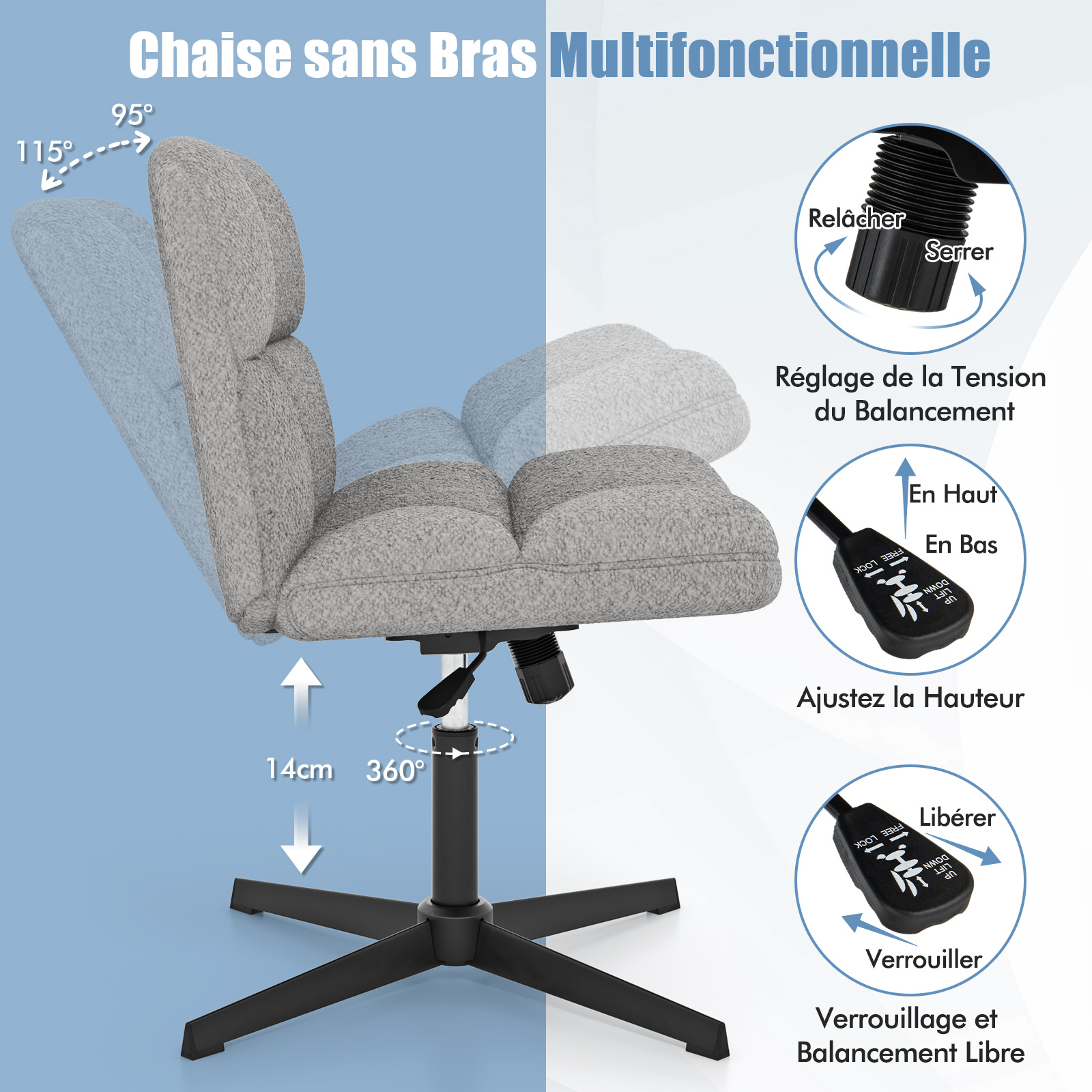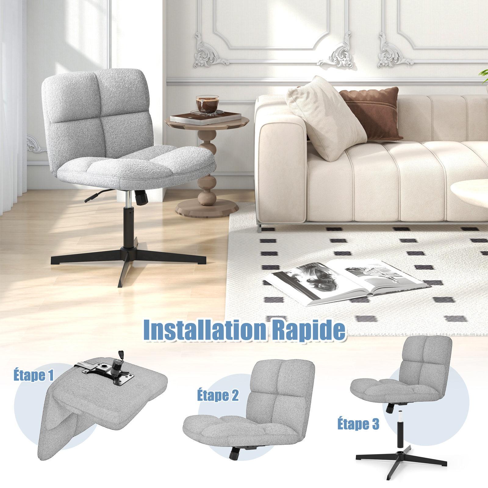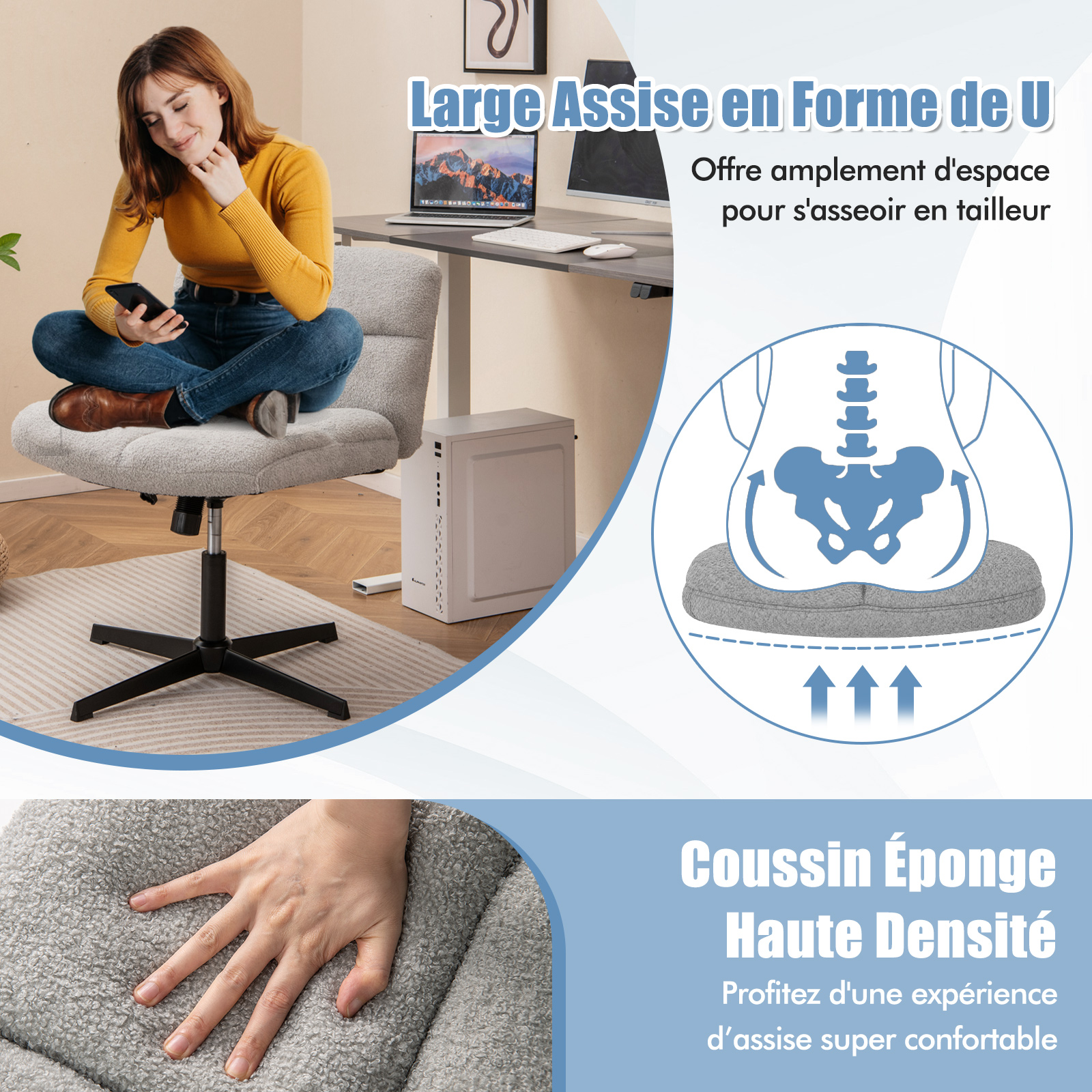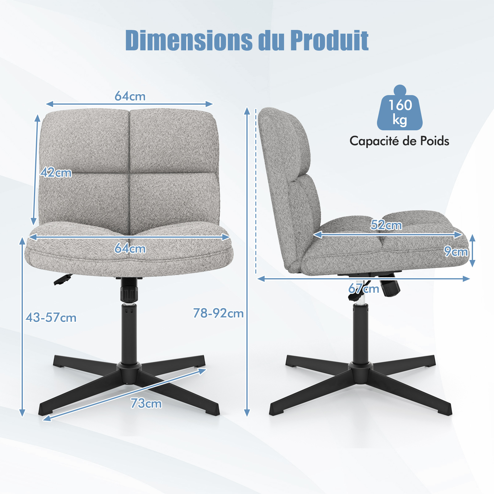 | Libellé | Chaise de Bureau en Imitation Laine d'agneau Hauteur Réglable, Chaise Pivotante à Pieds Croisés Métal avec Assise Large, Charge 160 kg, Gris |