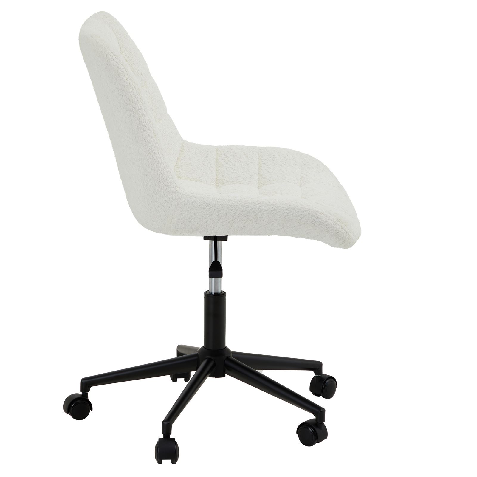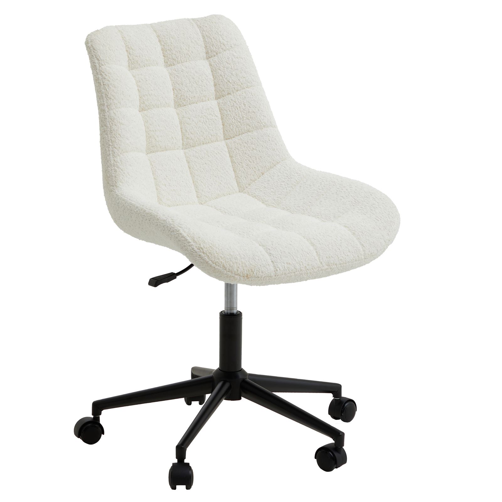 | Libellé | Chaise de bureau en pilou TASK fauteuil pivotant à roulettes en tissu bouclé blanc avec pieds en métal laqué noir |
