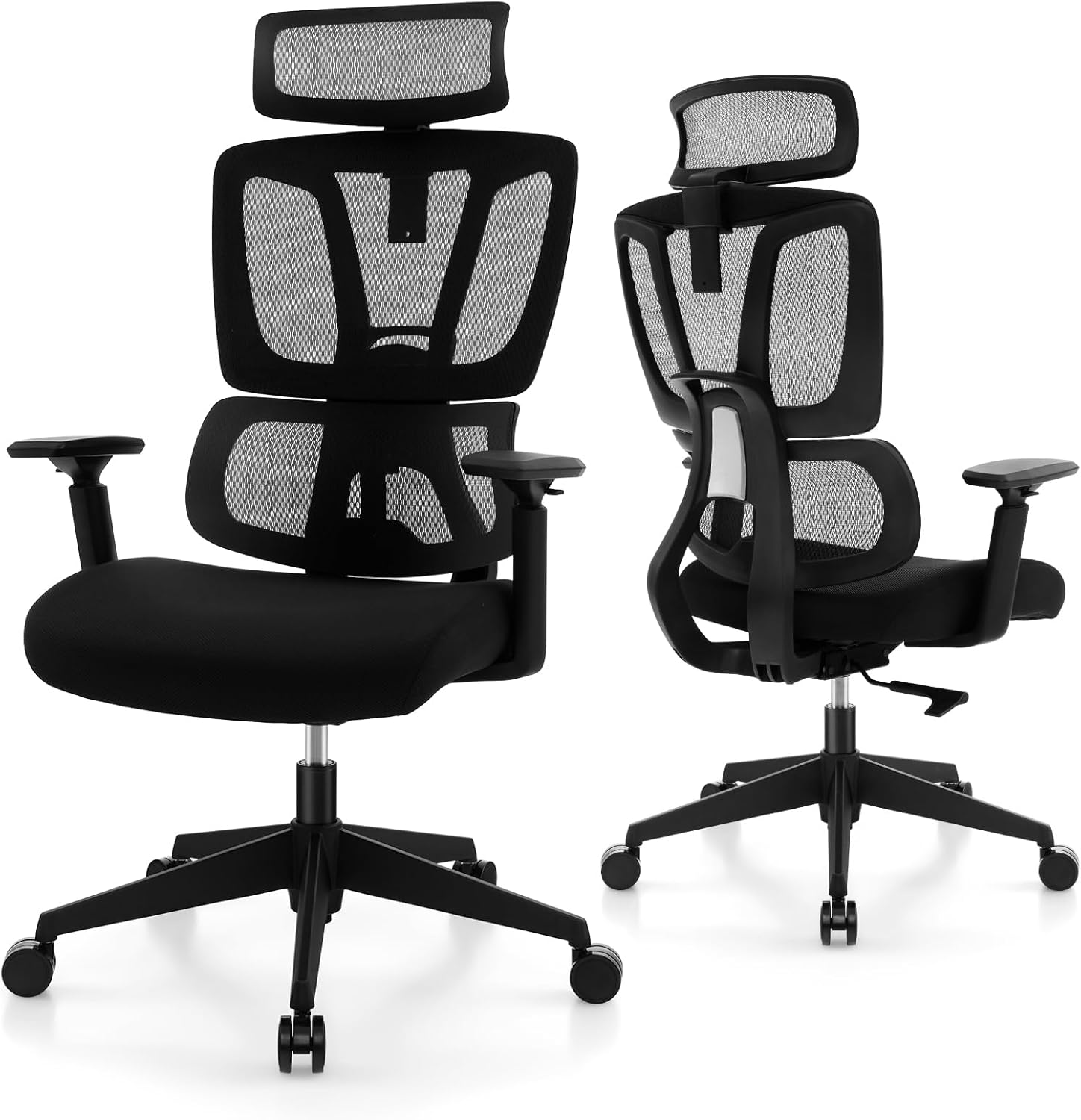 Chaise de bureau ergonomique réglable en maille respirante avec appui lombaire avec appuie-tête noir