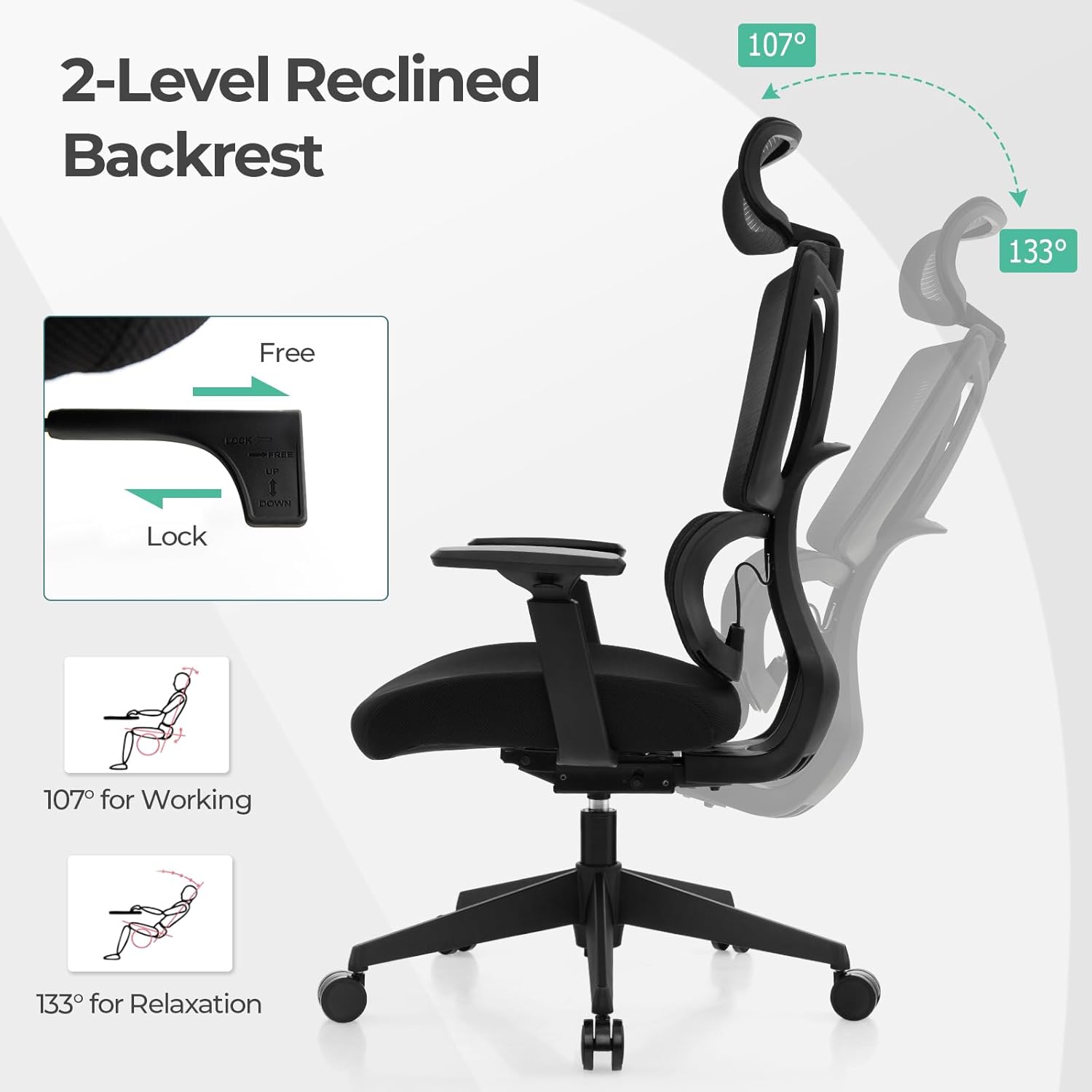 | Libellé | Chaise de bureau ergonomique réglable en maille respirante avec appui lombaire avec appuie-tête noir |