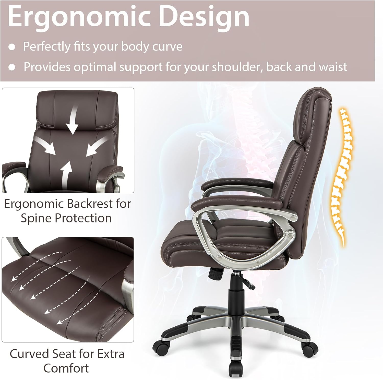 - Design ergonomique : le dossier incurvé de la chaise est ergonomique et s'adapte parfaitement aux courbes de votre corps. Elle offre un soutien optimal pour les épaules, le dos, la colonne vertébrale et la région lombaire. Accoudoirs rembourrés en polyuréthane doux pour détendre vos mains et vos bras.