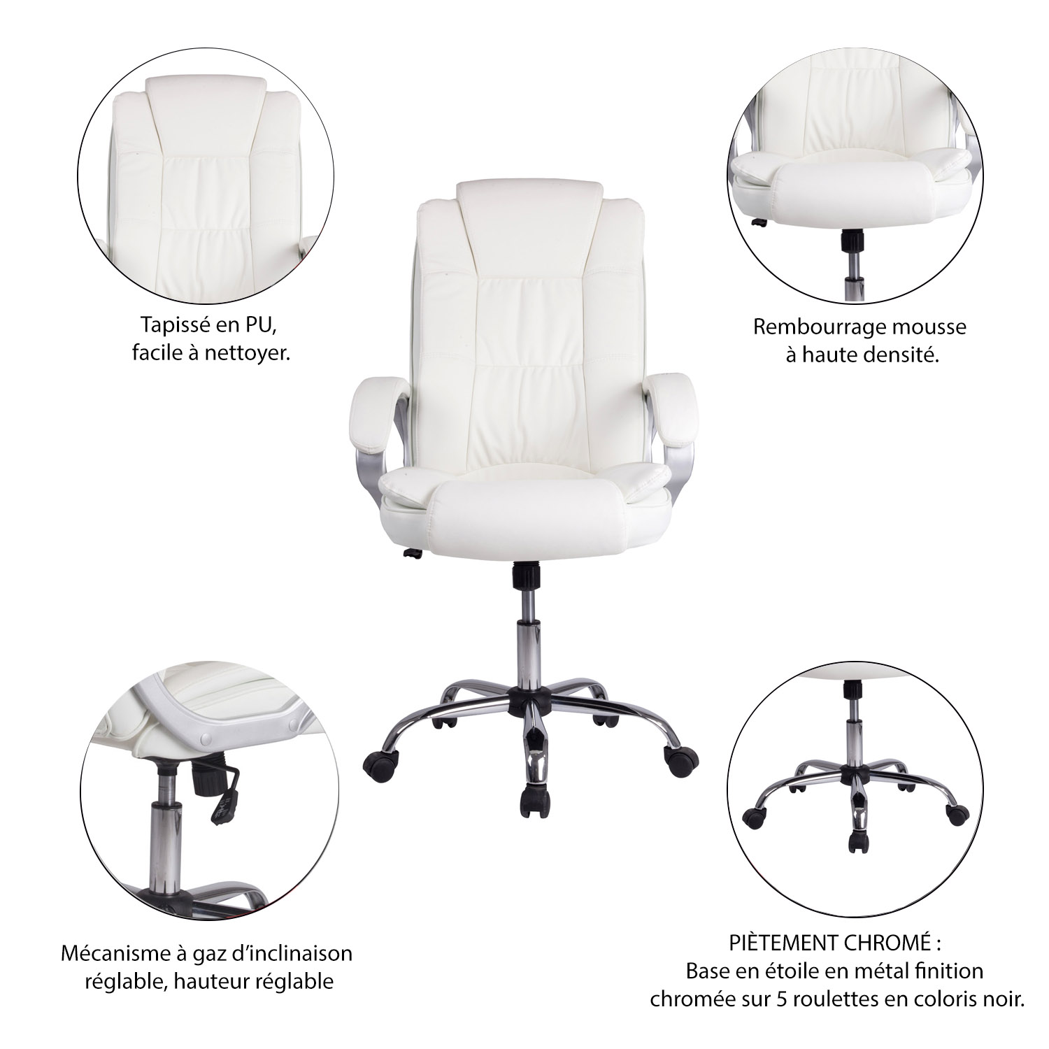 | Libellé | Chaise de Bureau Karen Elevable et Fauteuil inclinable en Simili Cuir Blanc |