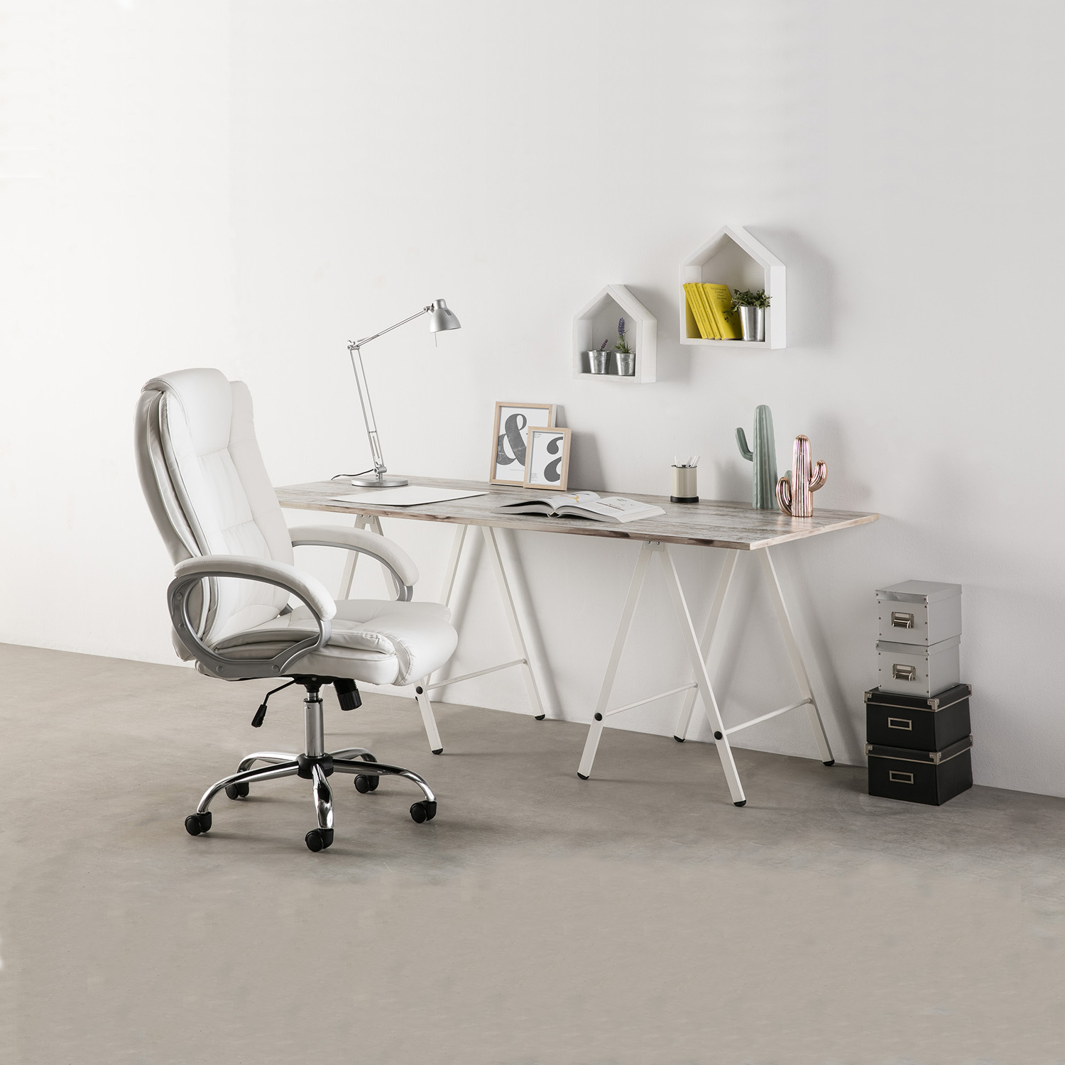 Chaise de Bureau Karen Elevable et Fauteuil inclinable en Simili Cuir Blanc
