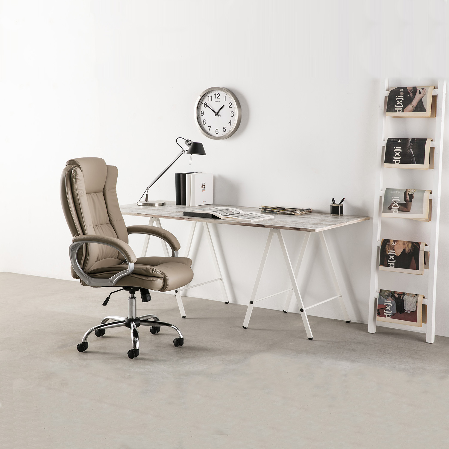 Chaise de Bureau Karen Elevable et Fauteuil inclinable en Simili Cuir Taupe