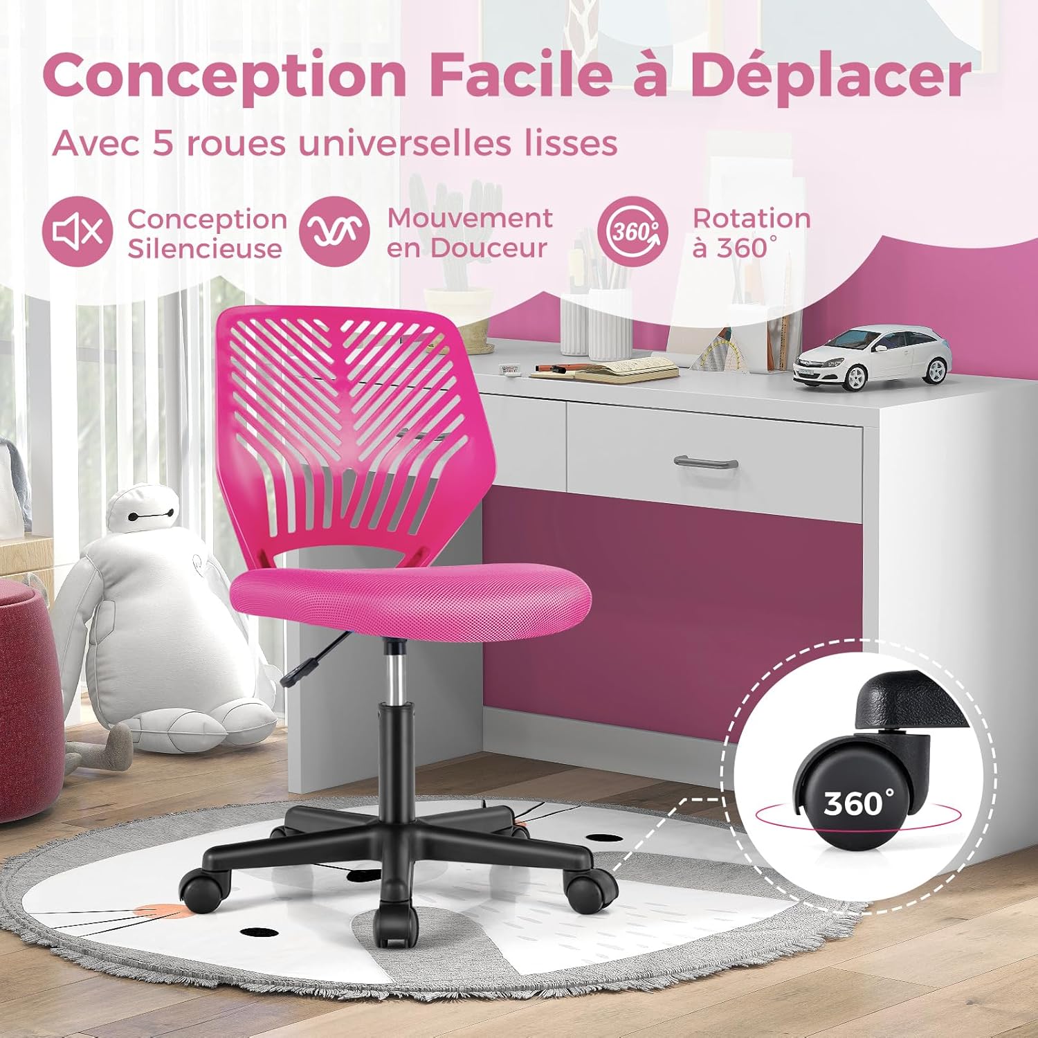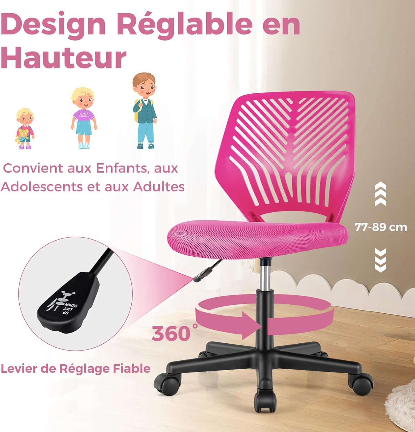 | Libellé | Chaise de Bureau Pivotante Enfants avec Hauteur Réglable 77-89cm, Siège à roulettes (Rose) |