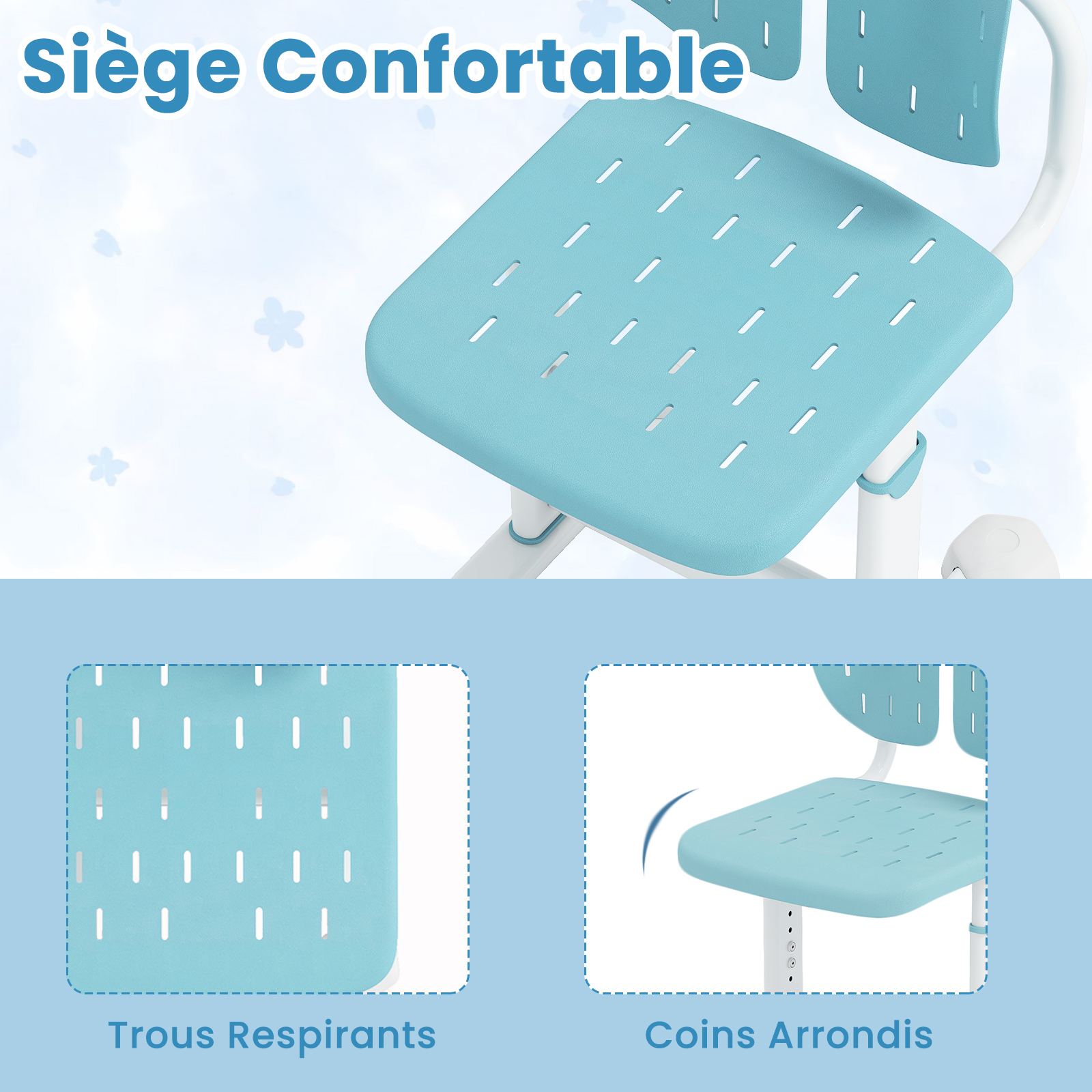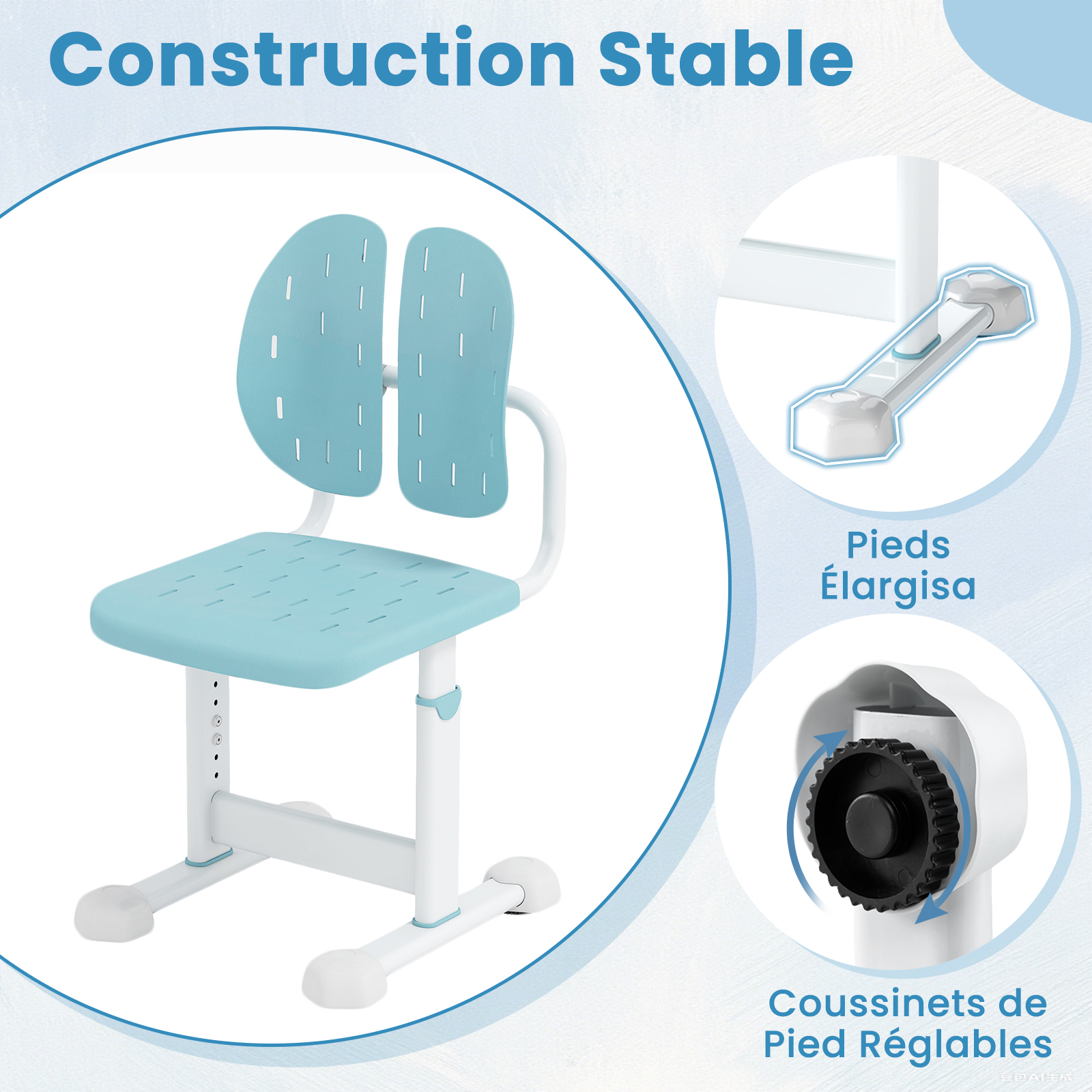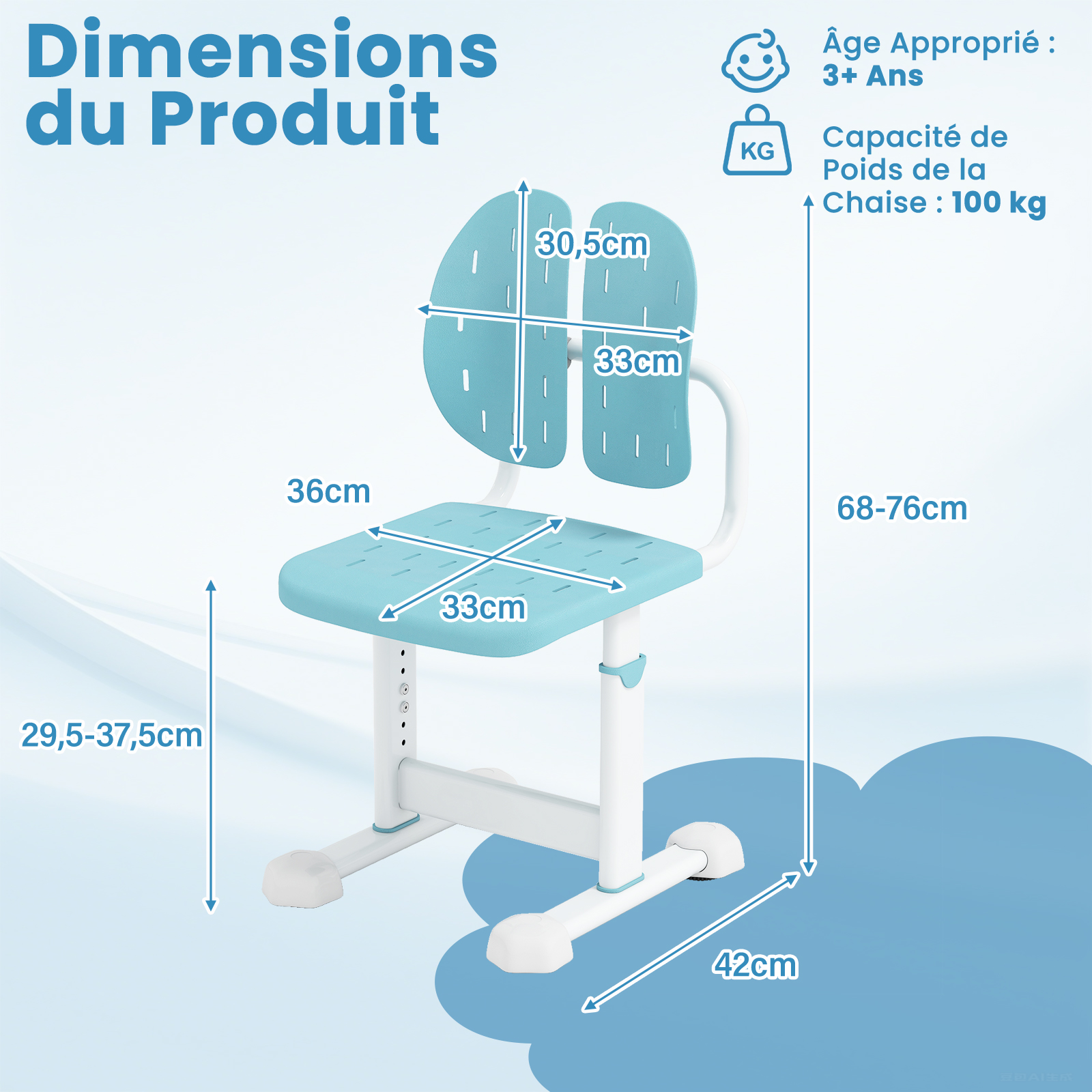 | Libellé | Chaise de Bureau pour Enfant 3 Ans+ Réglable en Hauteur avec Double Dossier et Assise Respirante, Structure en Métal, Charge 100KG, Bleu |