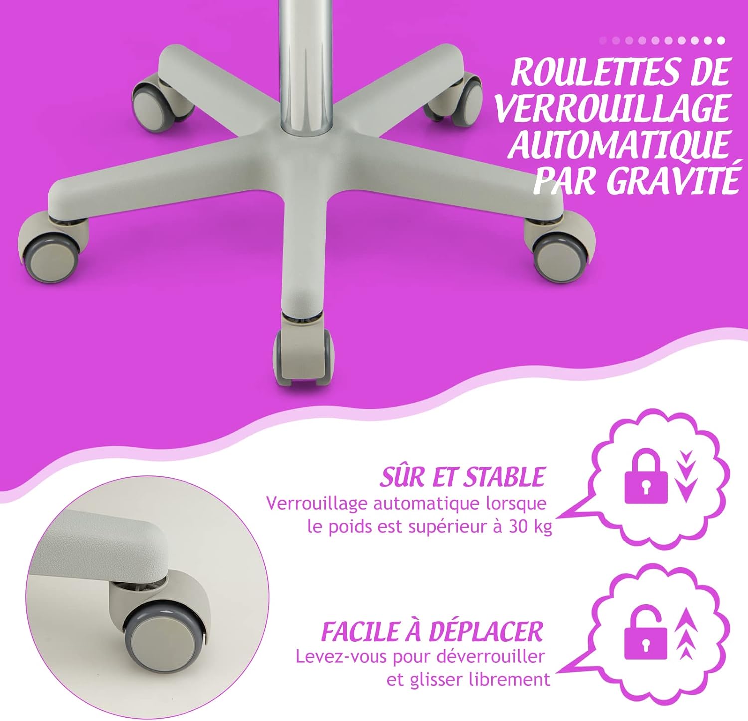 - 5 Roues Flexibles & Sécurisées : Cette chaise d'apprentissage pour enfants est équipée de 5 roues pivotantes durables à 360° pour des mouvements souples et flexibles. Asseyez-vous dessus et vous pourrez vous déplacer dans n'importe quelle position.