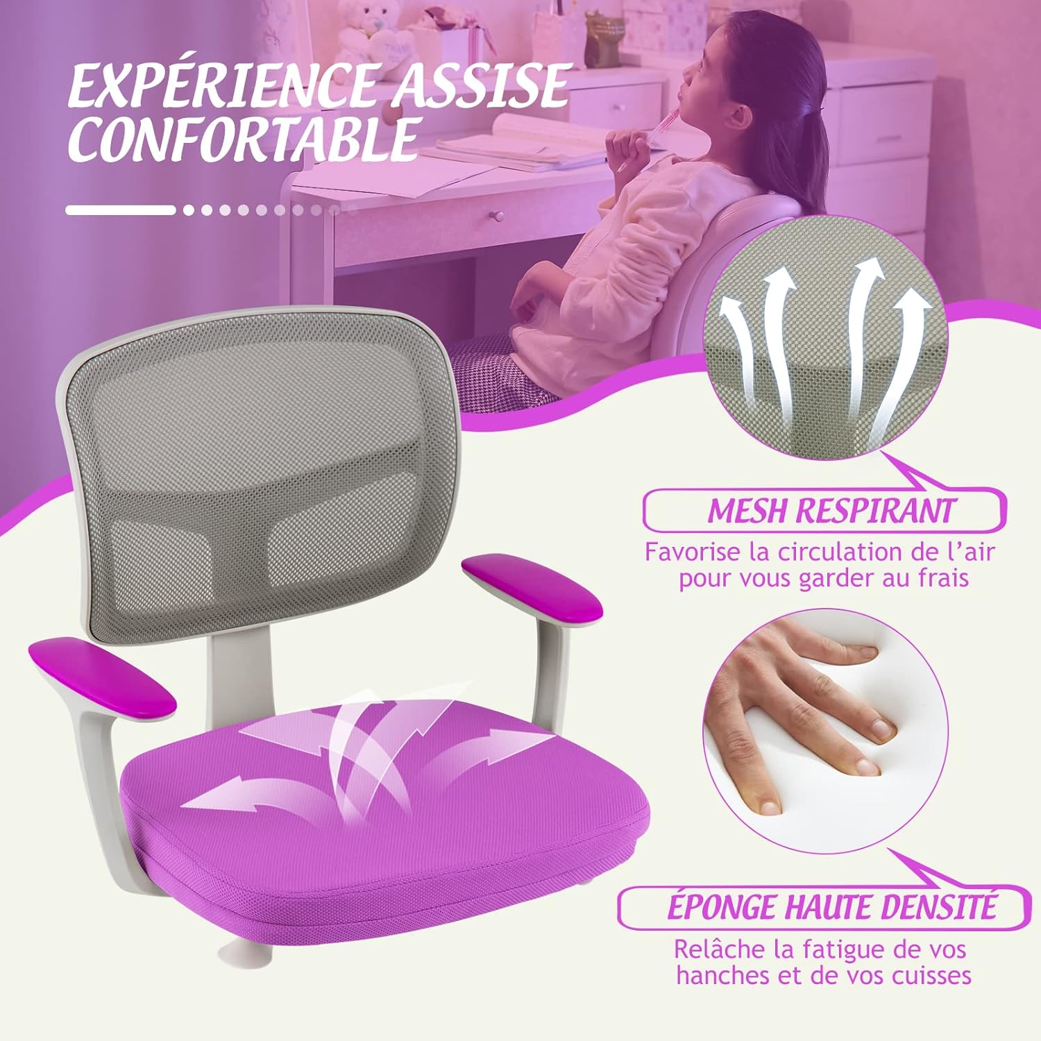 - Matériaux en Qualité pour l'Assise Confortable : Des matériaux de haute qualité assurent une bonne durée de vie à cette chaise pour enfants, avec un tissu en maille respirante et une mousse à haute élasticité pour une assise confortable. Les accoudoirs offrent également un bon soutien pour les coudes et les poignets.
