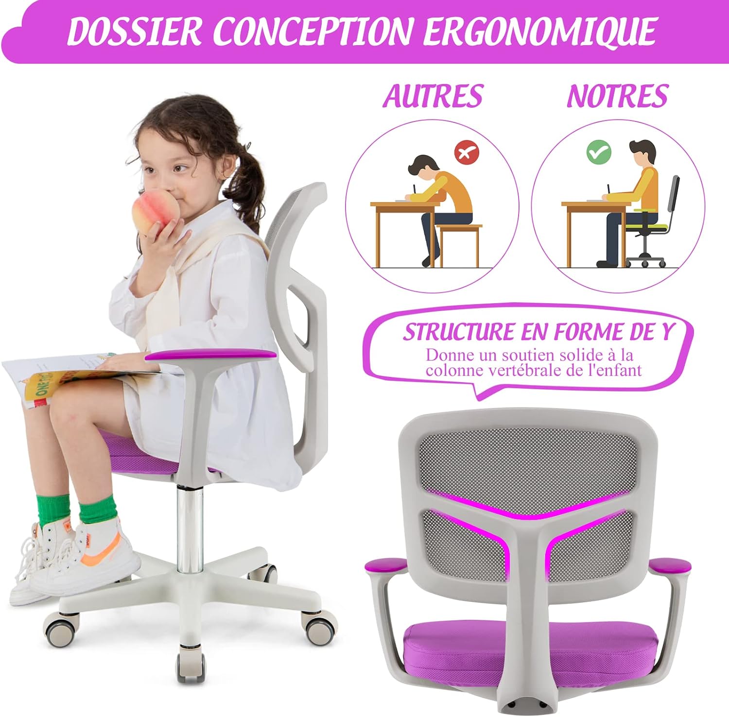 - Dossier Ergonomique : Le dossier ergonomique de la chaise pour enfants est bien adapté aux courbes du corps et aide les enfants à adopter une position assise correcte. Et grâce à sa structure en forme de Y, le dossier a également un bon support.