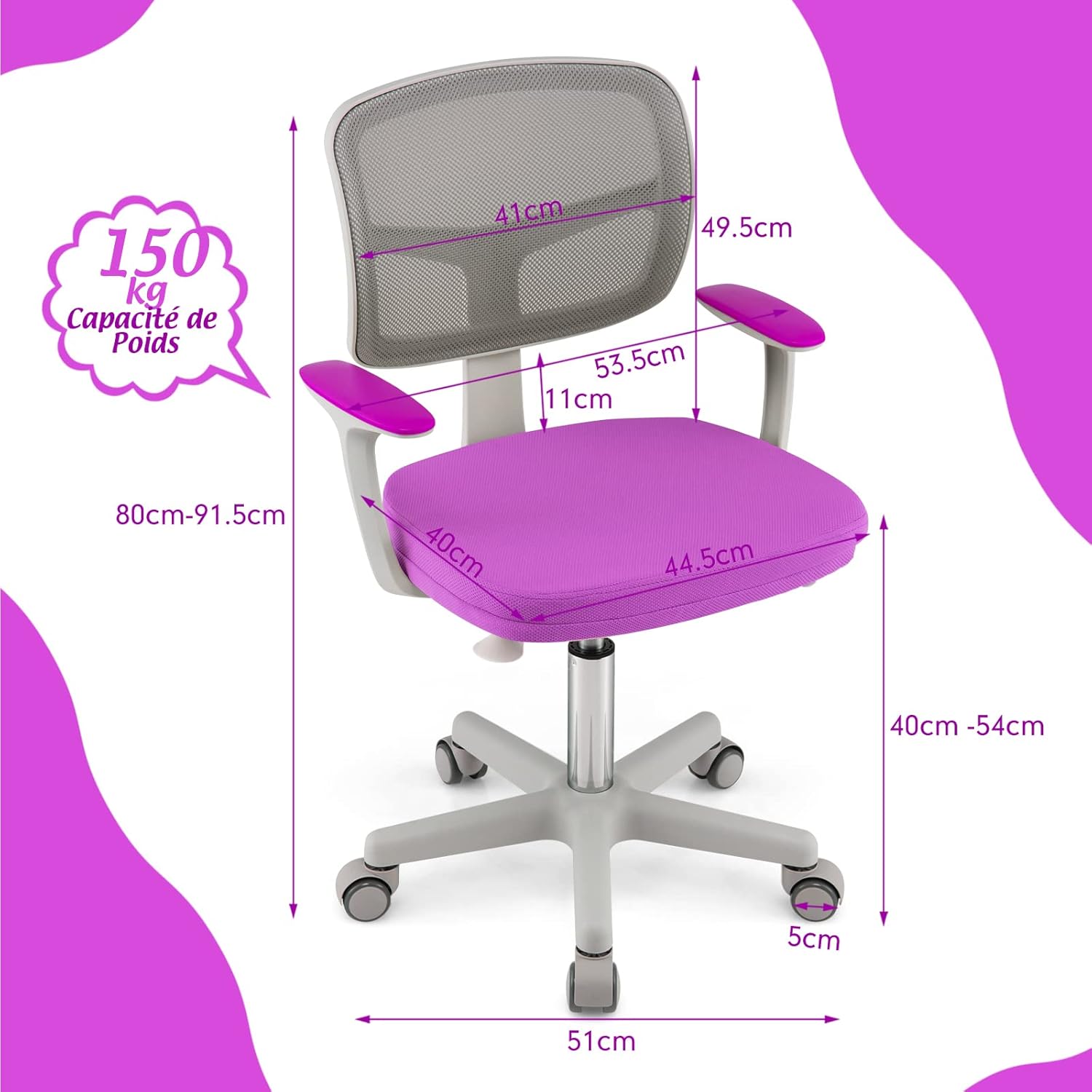 - Matériaux en Qualité pour l'Assise Confortable : Des matériaux de haute qualité assurent une bonne durée de vie à cette chaise pour enfants, avec un tissu en maille respirante et une mousse à haute élasticité pour une assise confortable. Les accoudoirs offrent également un bon soutien pour les coudes et les poignets.