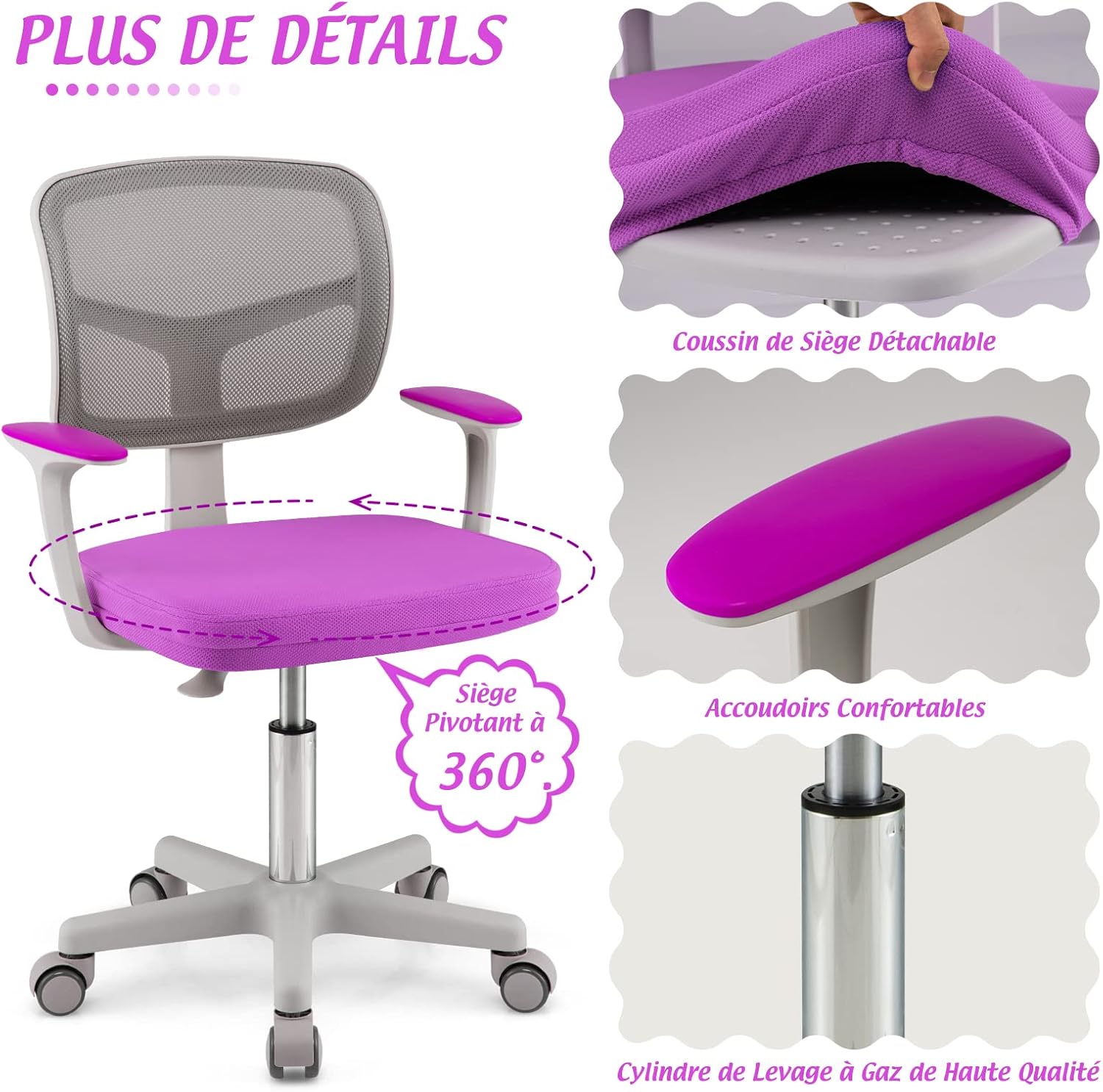 Chaise de bureau pour enfant, chaise d’étude avec dossier ergonomique et siège pivotant à 360°