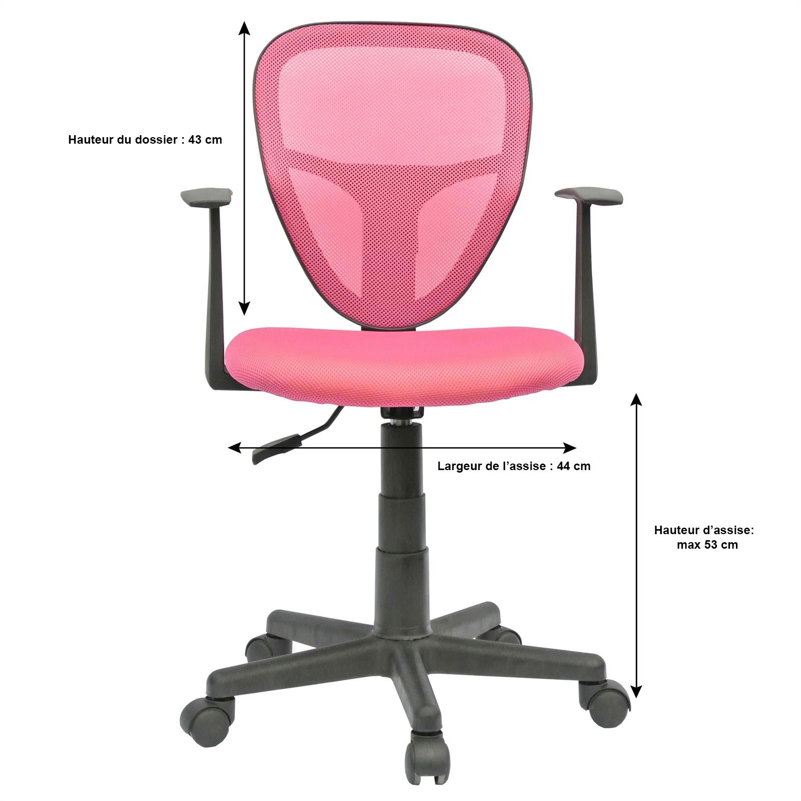 ... sera idéale pour installer vos enfants confortablement à l'heure des devoirs. Le revêtement en maille du dossier permet une bonne ventilation du dos lors de longues périodes de travail, tout en bénéficiant d'une assise confortable grâce au rembourrage du siège et à la forme ergonomique du dossier. Ce fauteuil de bureau est réglable en hauteur et les roulettes fournies sont également adaptées sur tapis. Cette chaise est disponible dans différentes combinaisons de couleurs, qui apporteront une bouffée d'air frais dans la chambre de votre enfant.