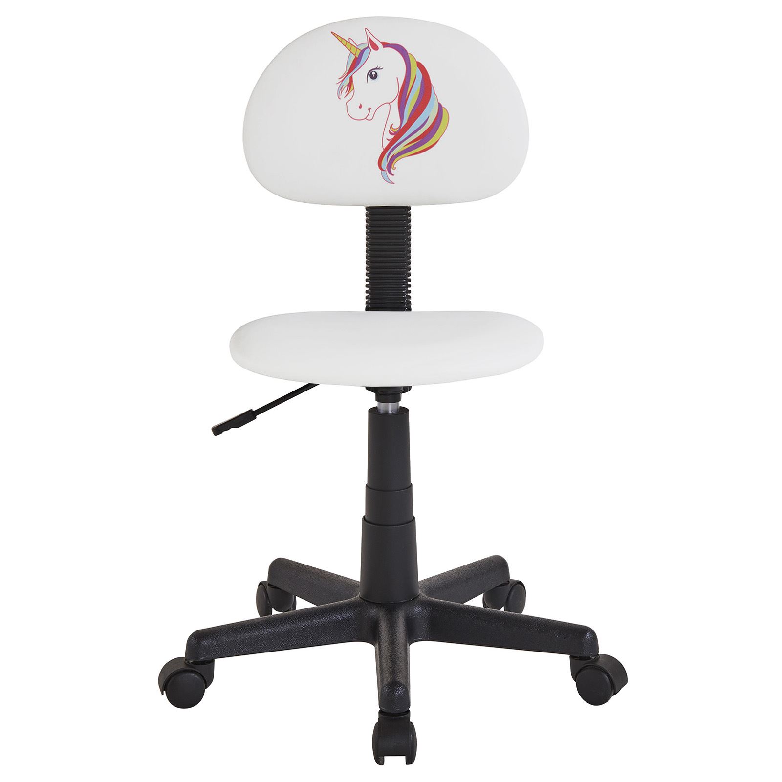 | Libellé | Chaise de bureau pour enfant UNICORN fauteuil pivotant sans accoudoirs hauteur réglable, en synthétique blanc avec motif licorne |