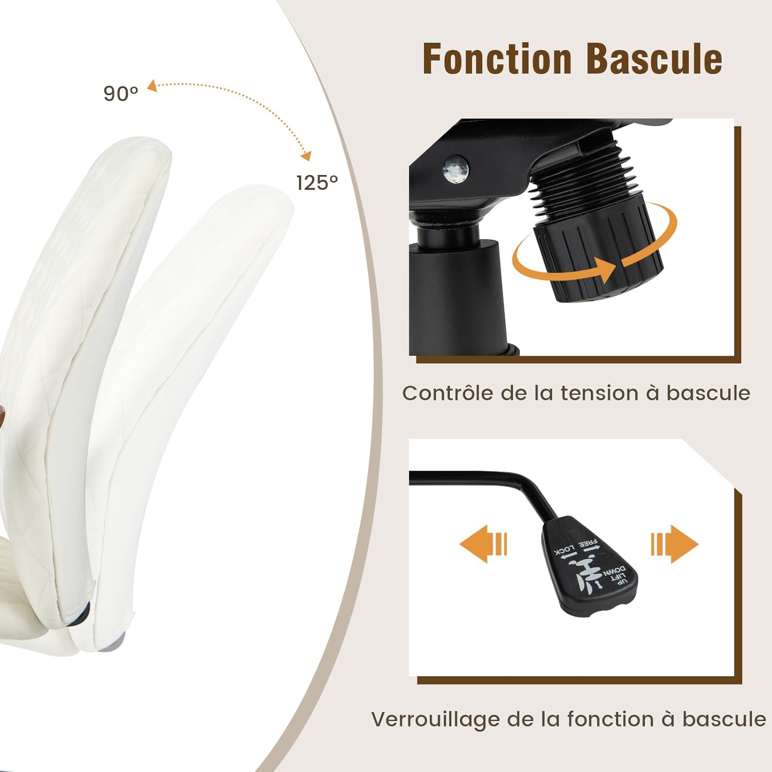 - Chaise de bureau pratique : Le dossier de notre chaise de bureau s'adapte parfaitement à votre dos et offre un soutien adéquat, ce qui évite efficacement la douleur dorsale. En outre, le bouton de contrôle de la tension vous permet de profiter d'un plaisir de bascule intéressant, et le cadre robuste en fer garantit une charge maximale de 150 kg.