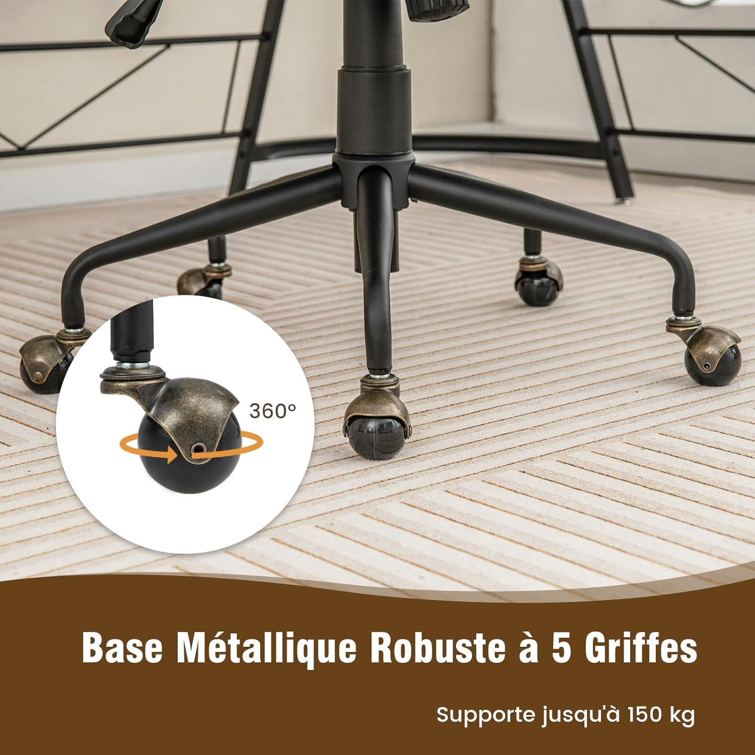 | Libellé | Chaise de bureau rétro avec accoudoirs, fauteuil vintage réglable en hauteur, chaise de travail à roulettes avec dossier ergonomique et siège rotatif |