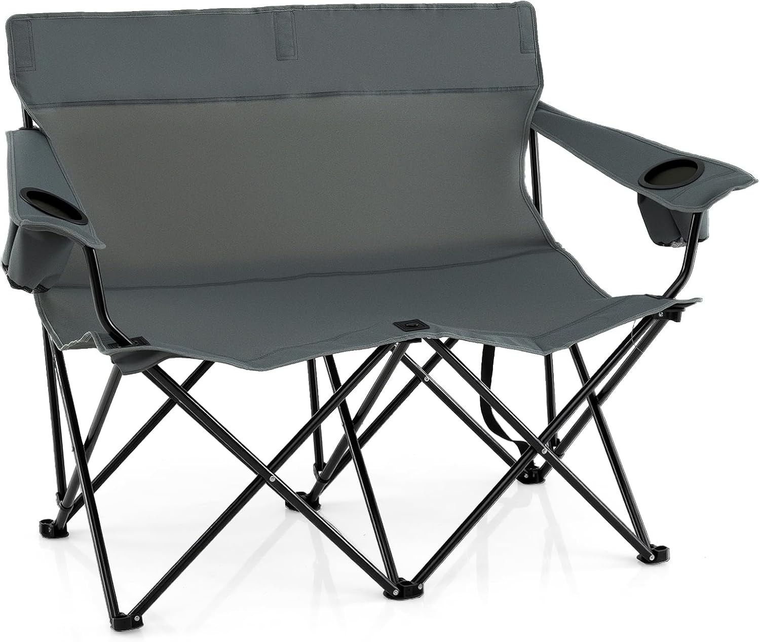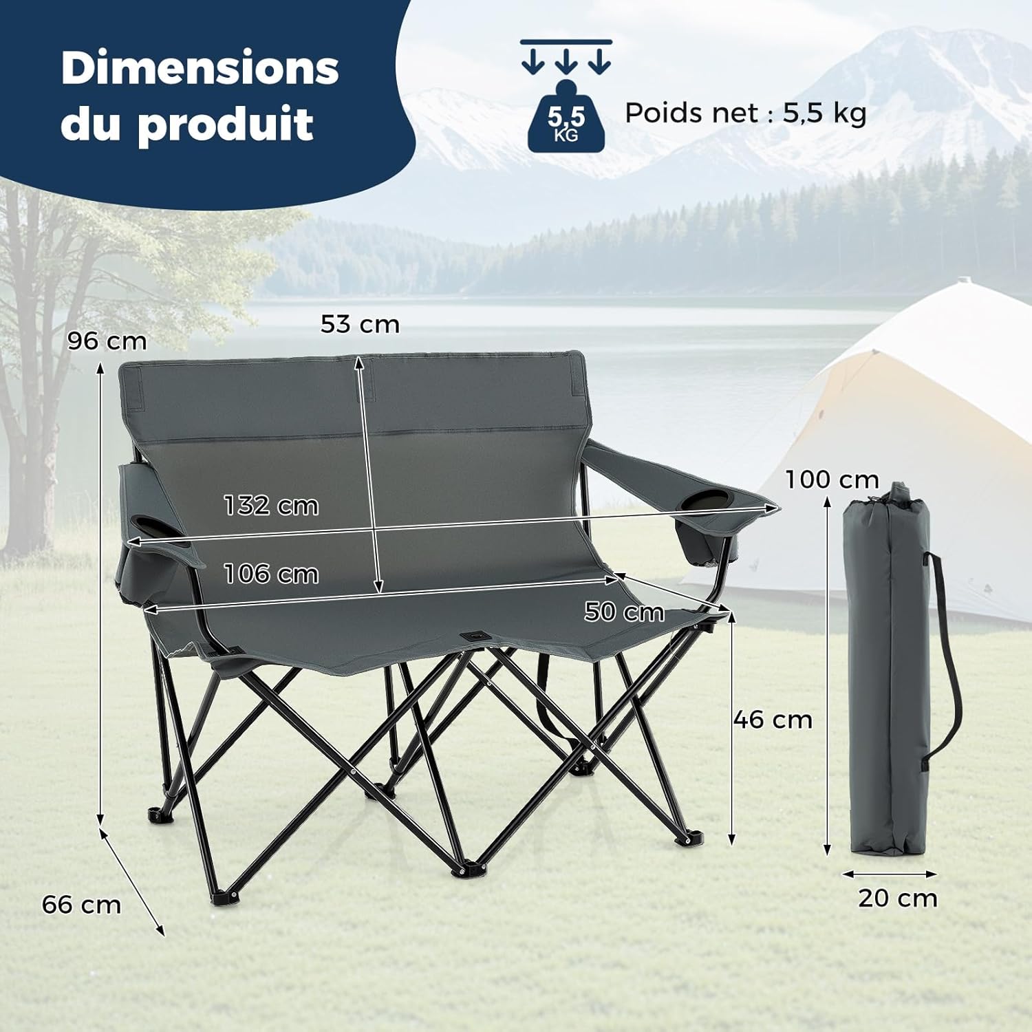 | Libellé | Chaise de camping 2 places, avec dossier confortable accoudoirs avec poches latérales chaise pliable gris |